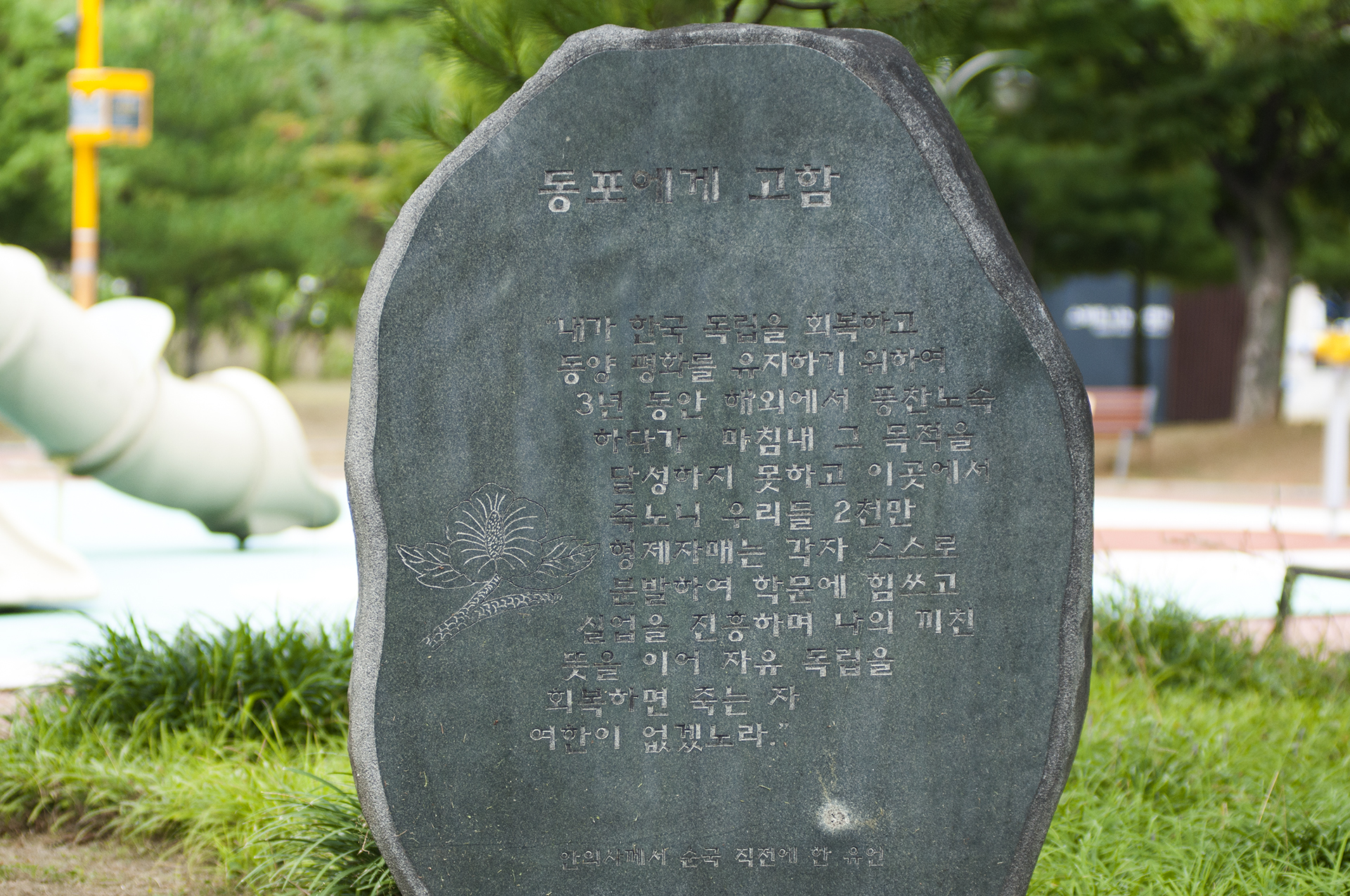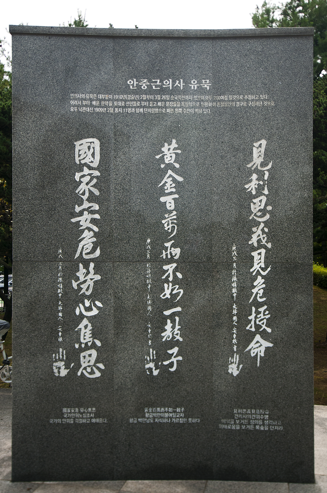 공원내에는 그밖에도 안중근 의사의 많은 유묵들이 시비석으로 세워져 있다.