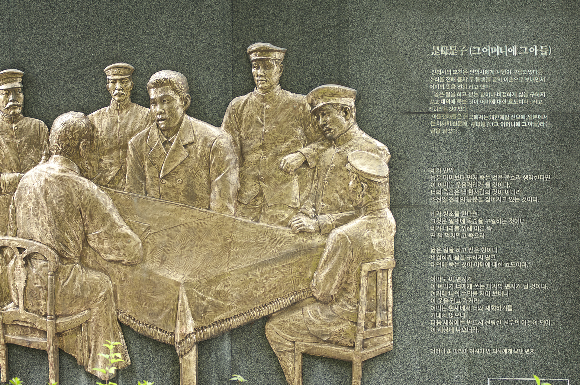 안중근공원에서 가장 눈에 띄는 부분은 동상 옆에 설치된 부조벽화라고 할수 있다.