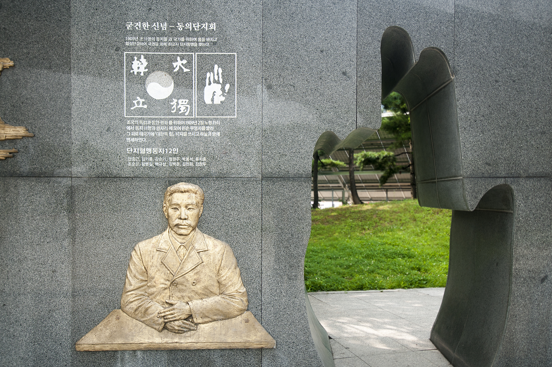조국의 독립과 동양평화를 위하여 1909년 2월 노령 카리에서 동지 11명과 한자리에 모여 왼손 무명지를 짤라 그 피로 태극기에 <대한독립> 넉자를 쓰고 하늘과 땅에 맹세하였다.