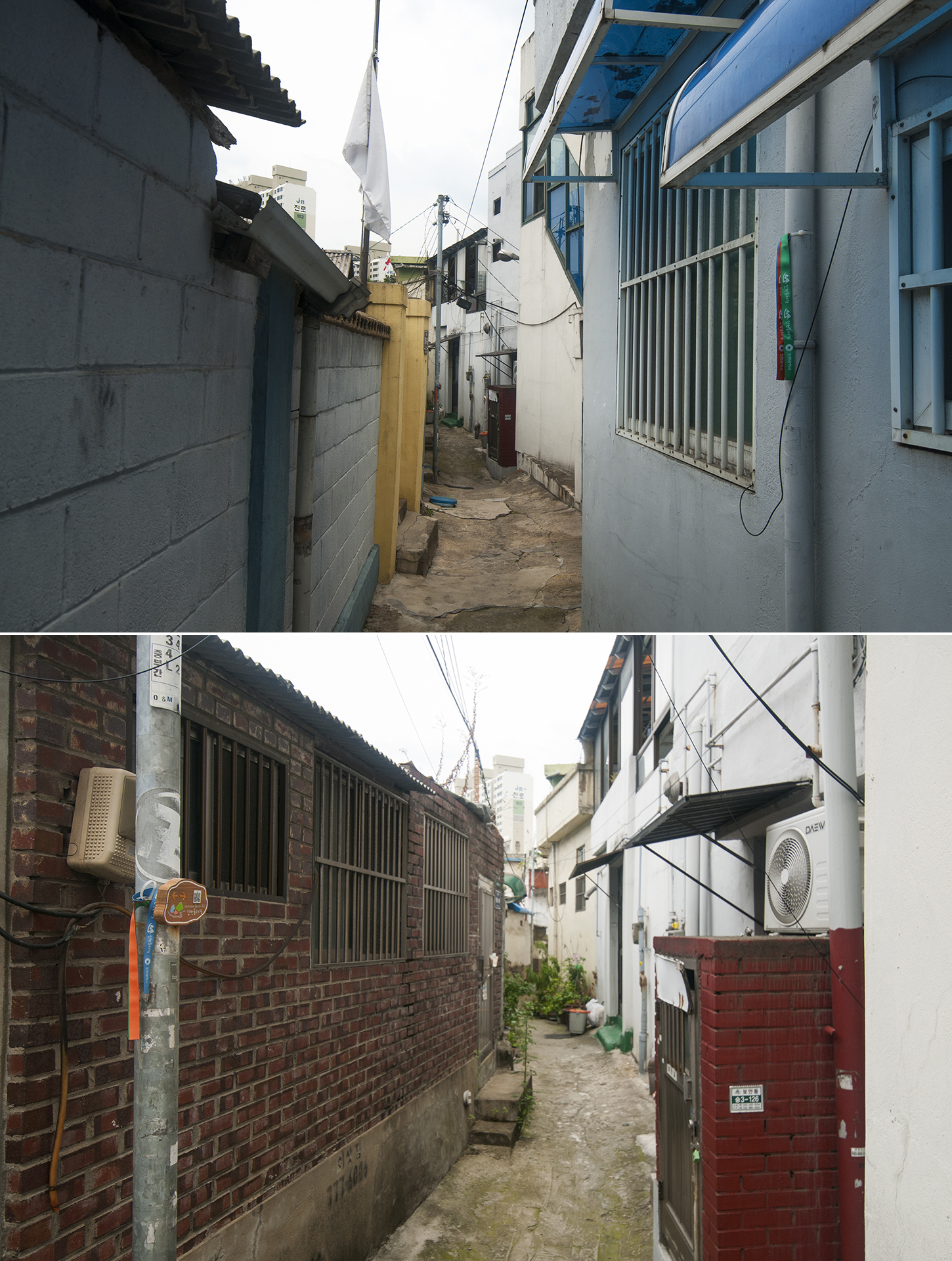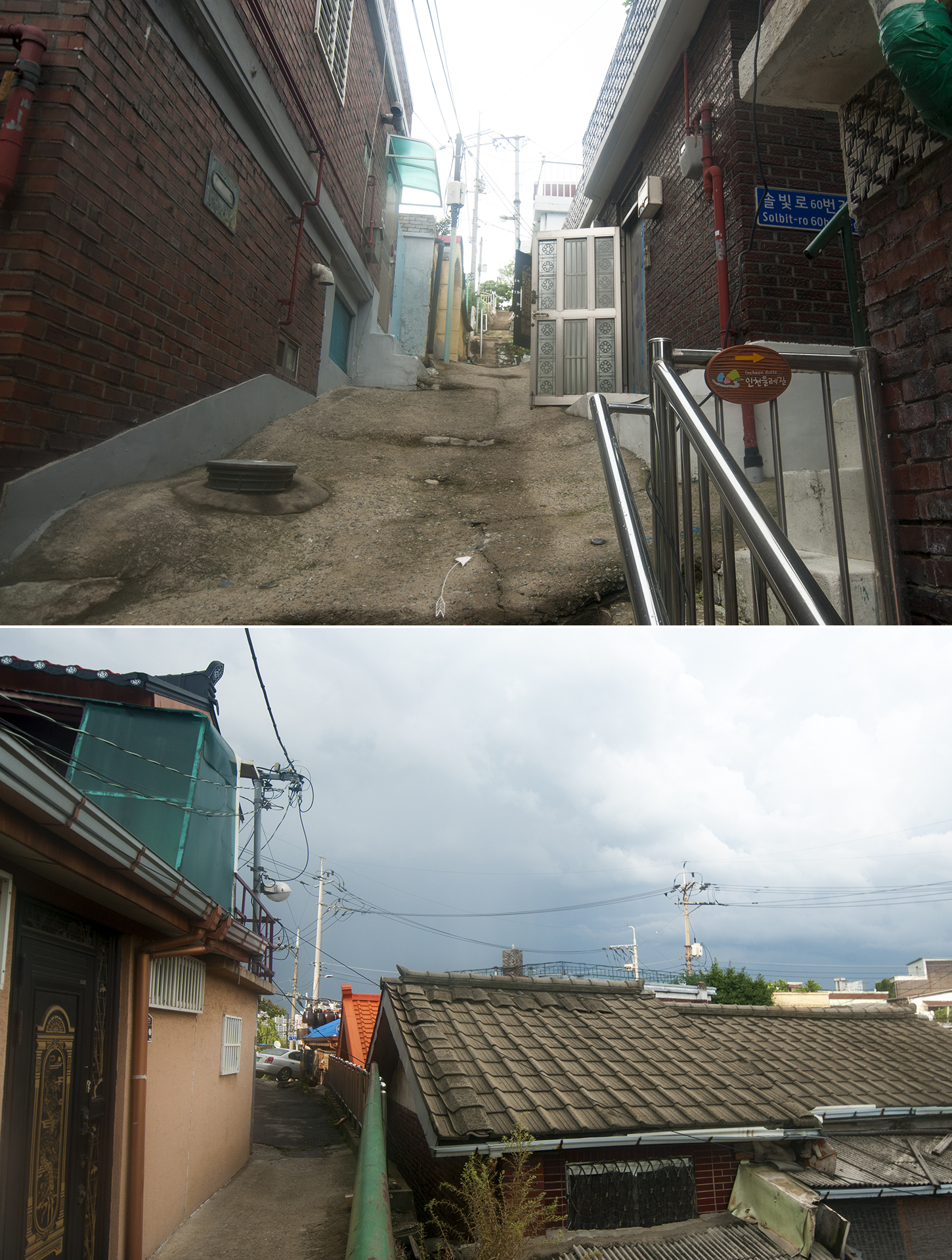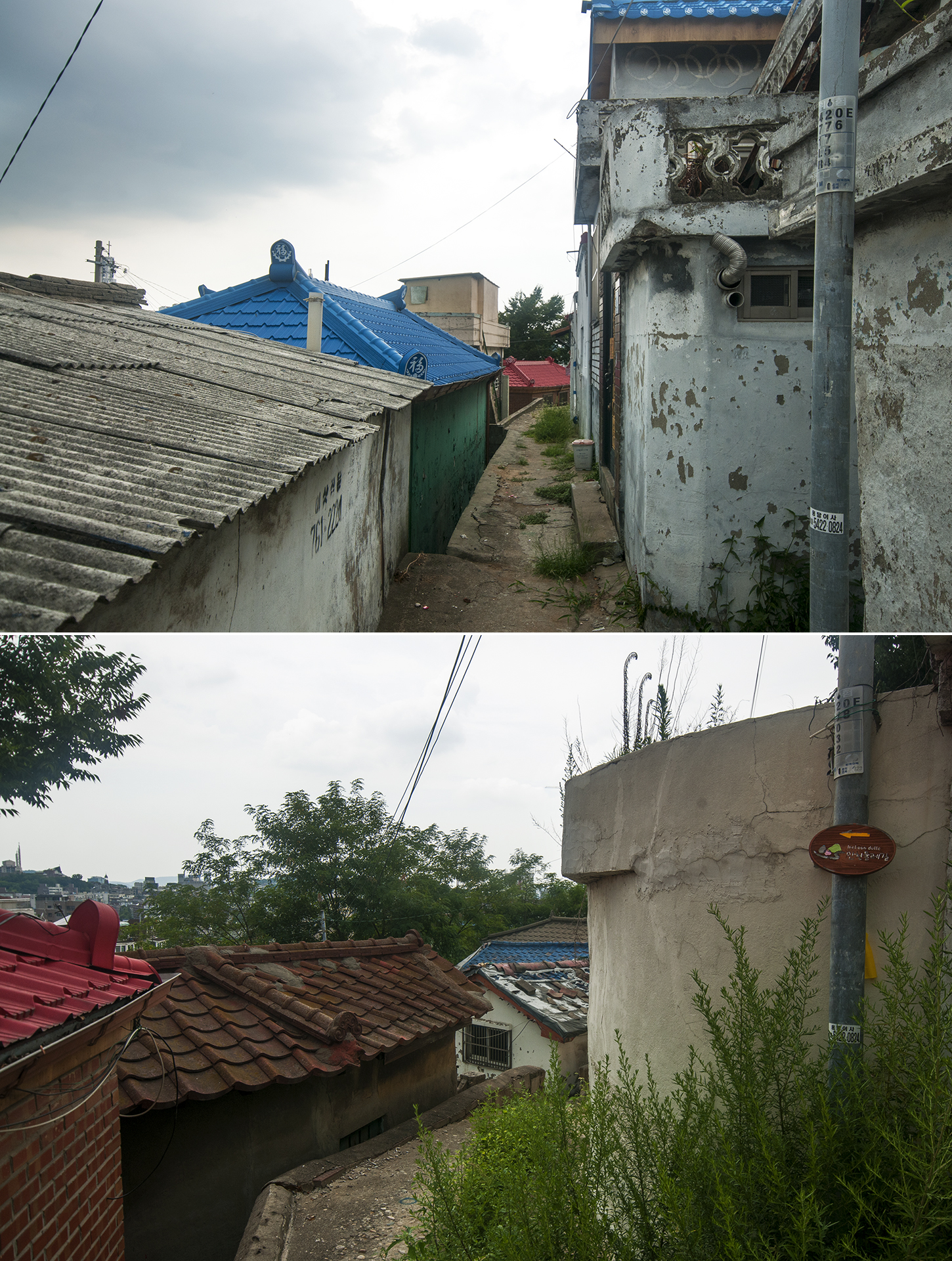 윗집에서는 아랫집 지붕이 훤히 내려다 보이고, 길은 그 사이로 위태로운듯 비좁게 이어진다.