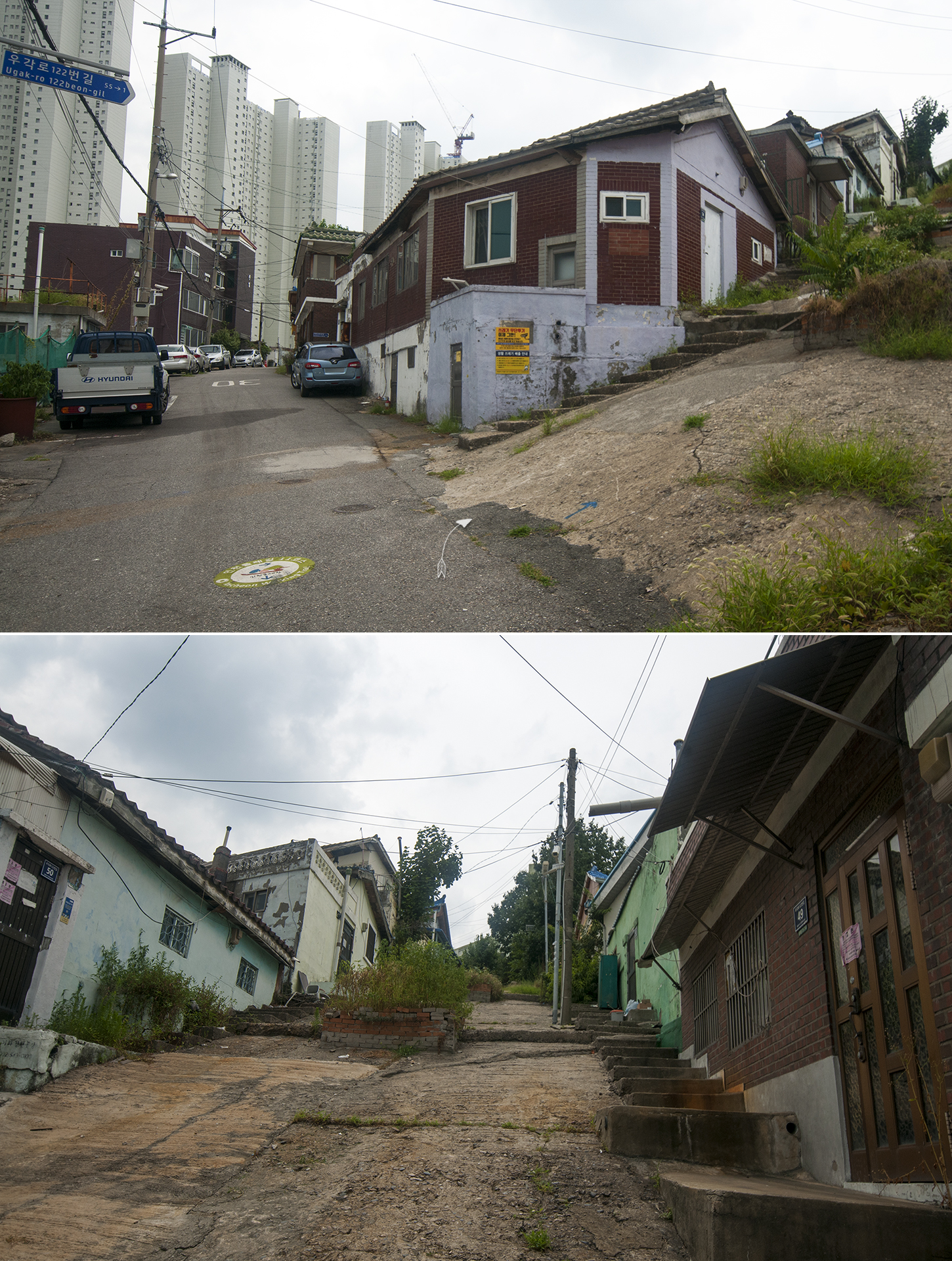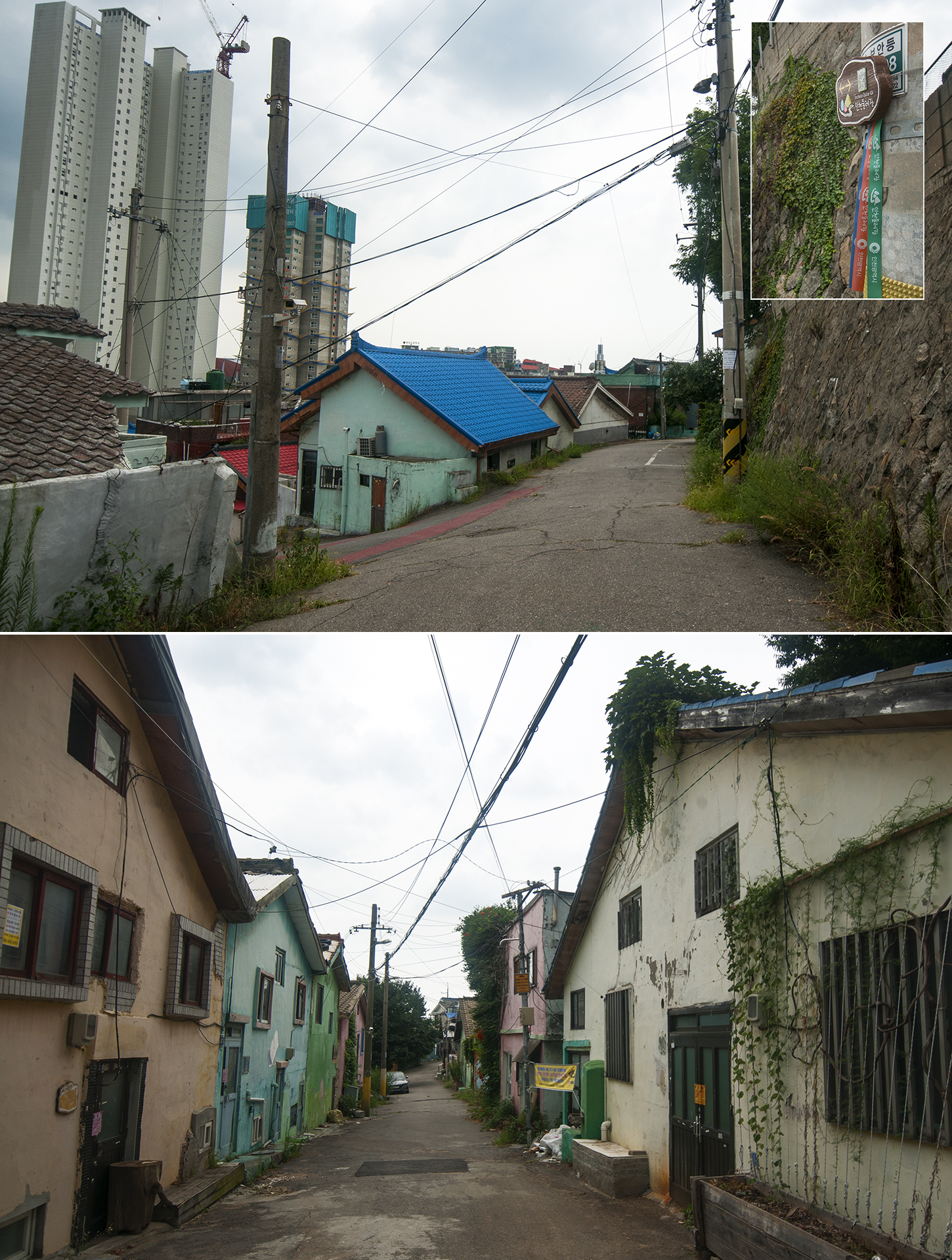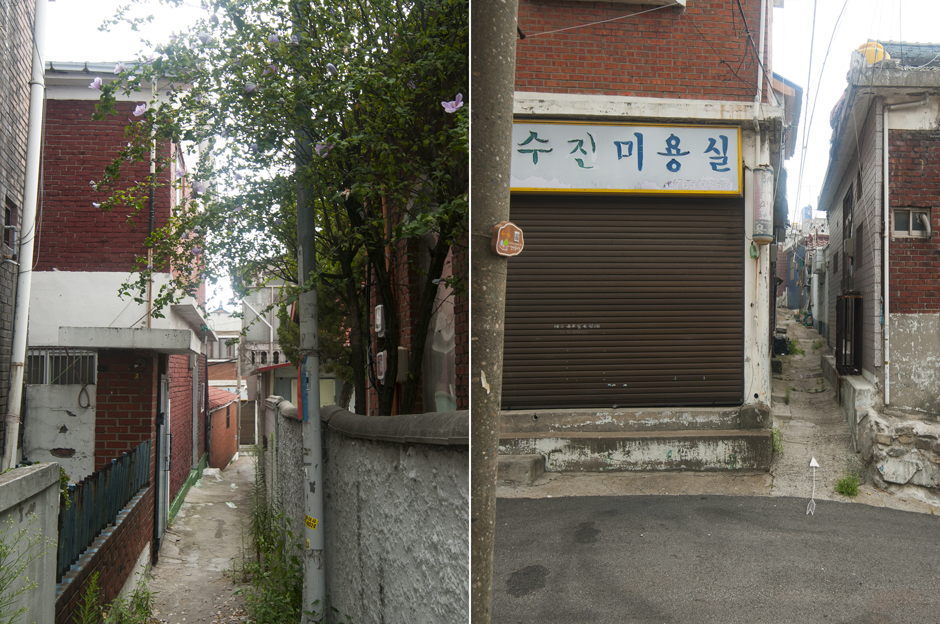 윗집에서는 아랫집 지붕이 훤히 내려다 보이고, 길은 그 사이로 위태로운듯 비좁게 이어진다.