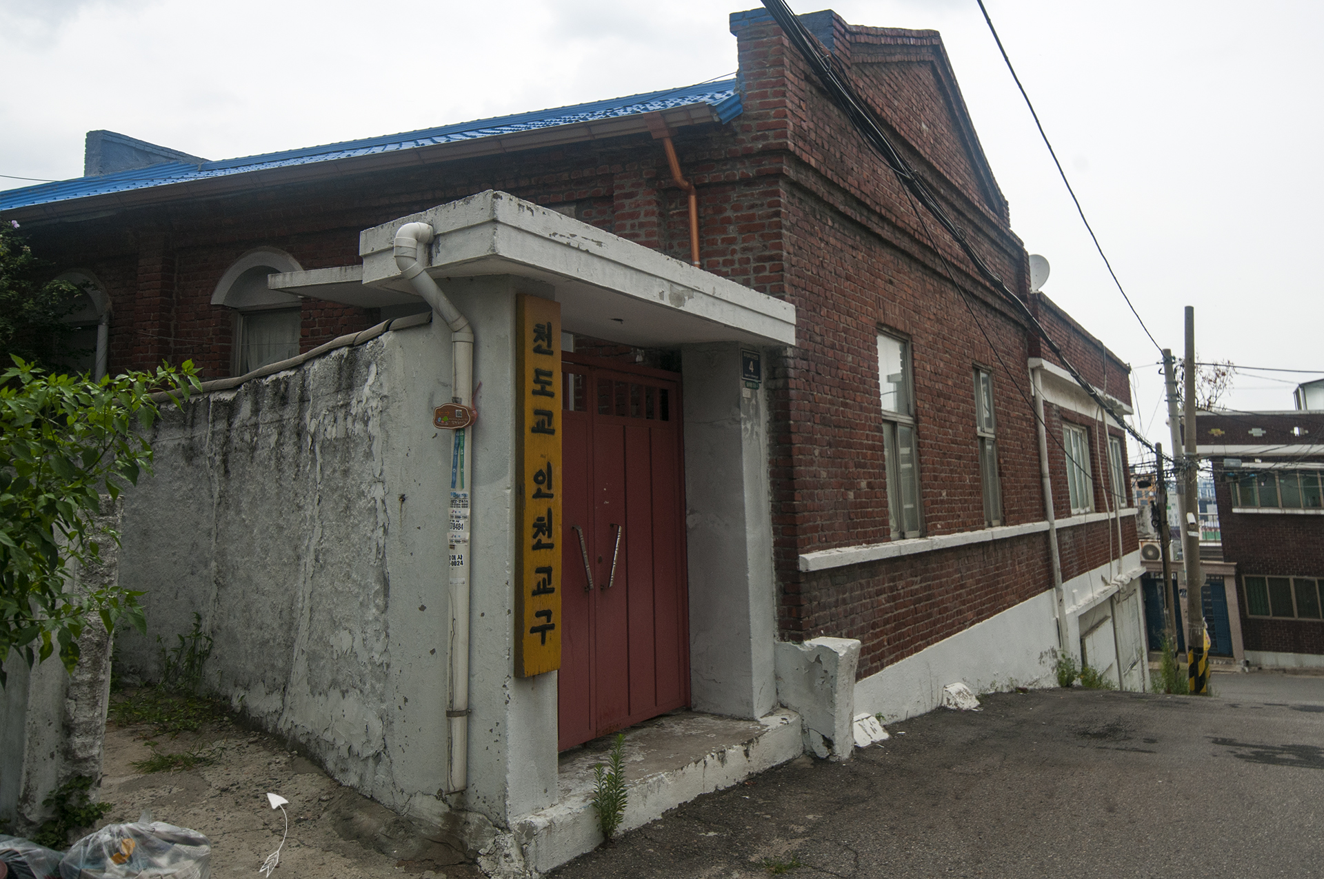 직진으로 걷던 길 막바지에서 천도교 인천교구 건물 골목으로 들어선다.