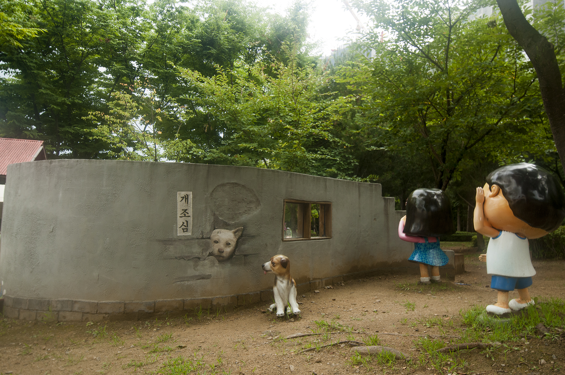오솔길을 걸어 박물관 야외에 설치되어 있는 재밌는 전시물들을 구경할수 있다.