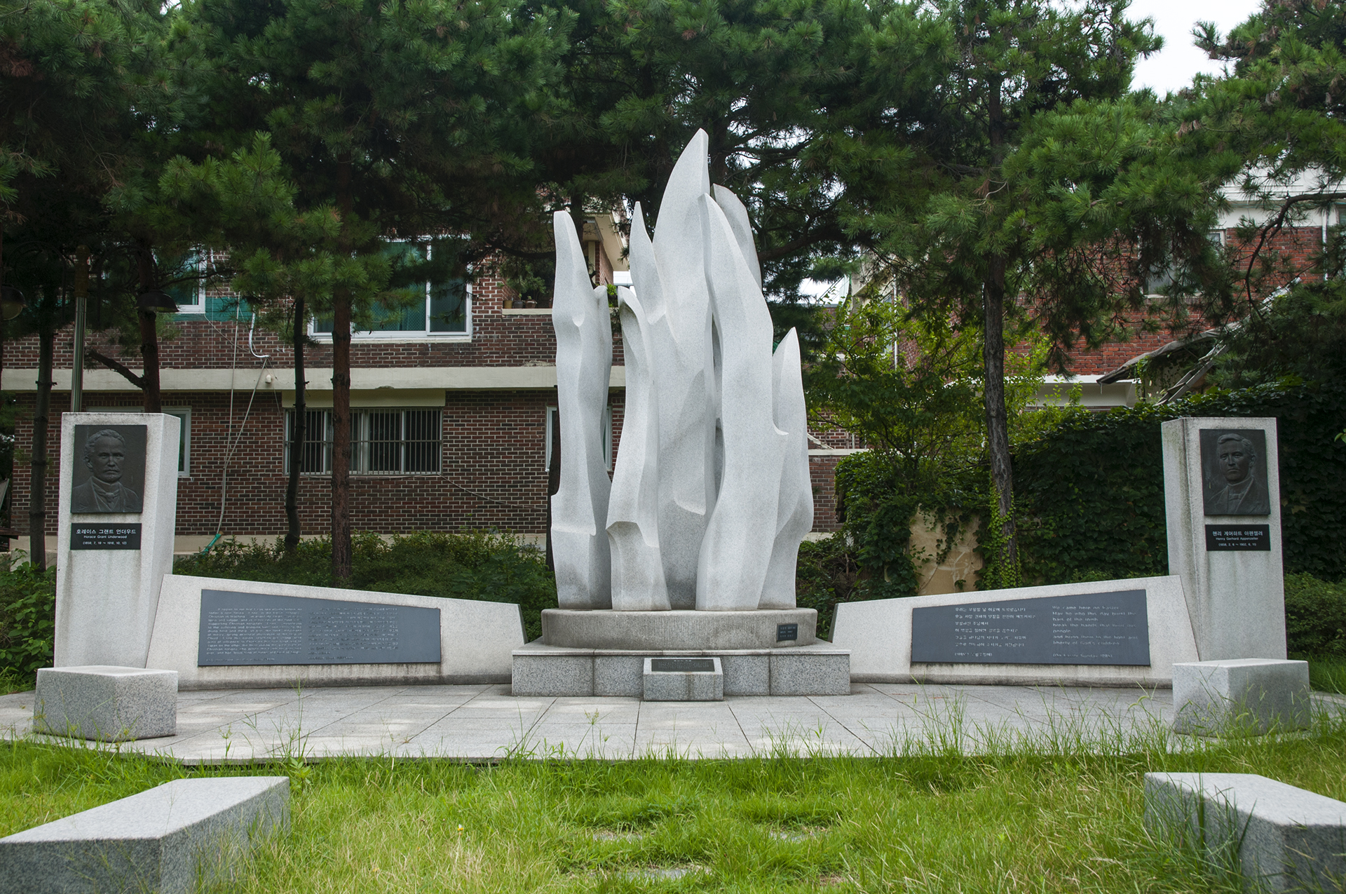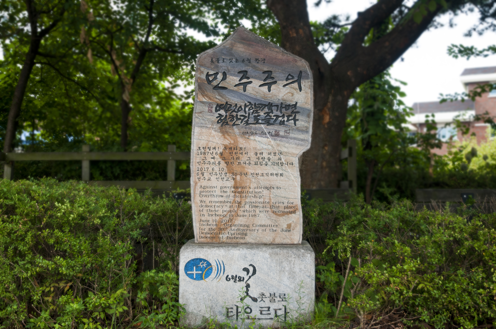 성당 앞마당 우측에는 6월항쟁 30주년 기념비가 세워져 있다.