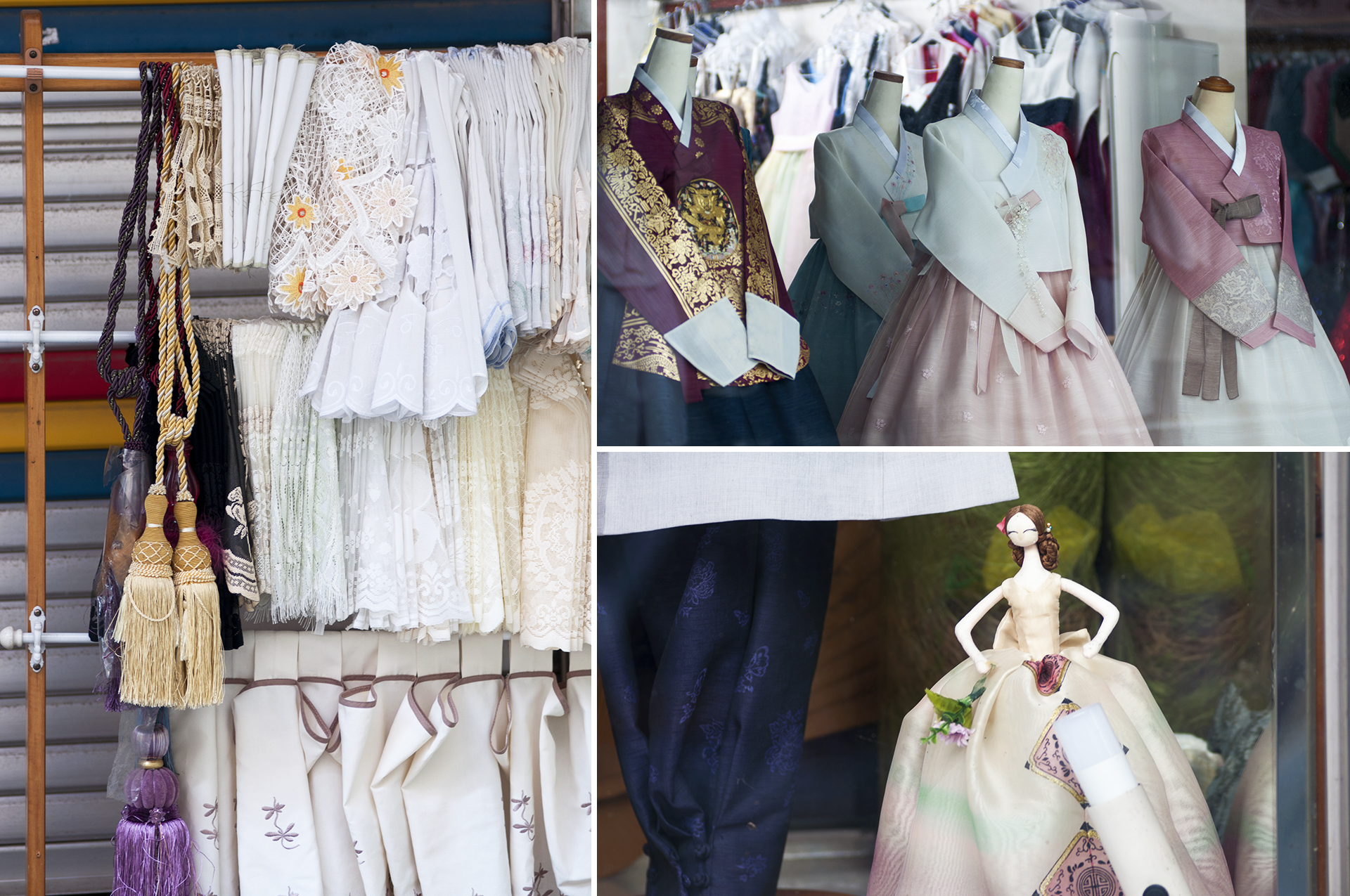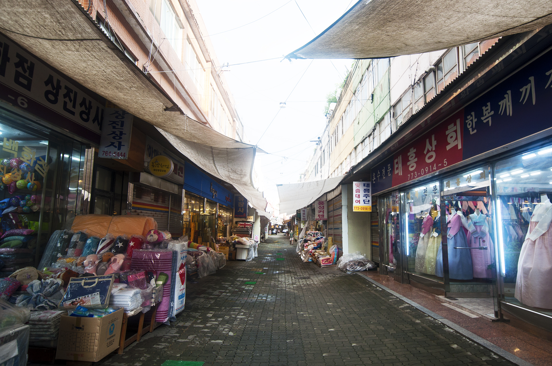 중앙시장에는 한복점과 이불, 혼수전문 가게들이 많다.