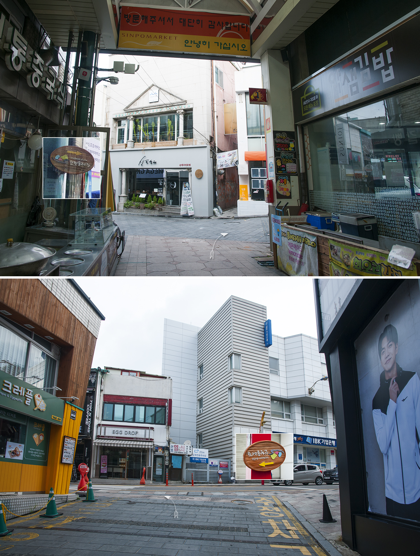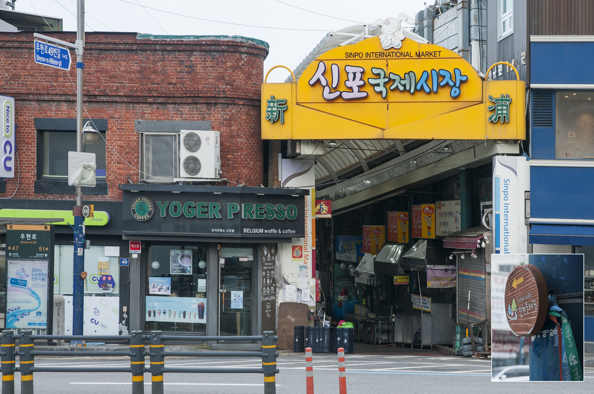 다시 박문유치원 길로 내려와 그 앞을 지나 도로까지 나가면 건너편에 신포국제시장이 보인다.