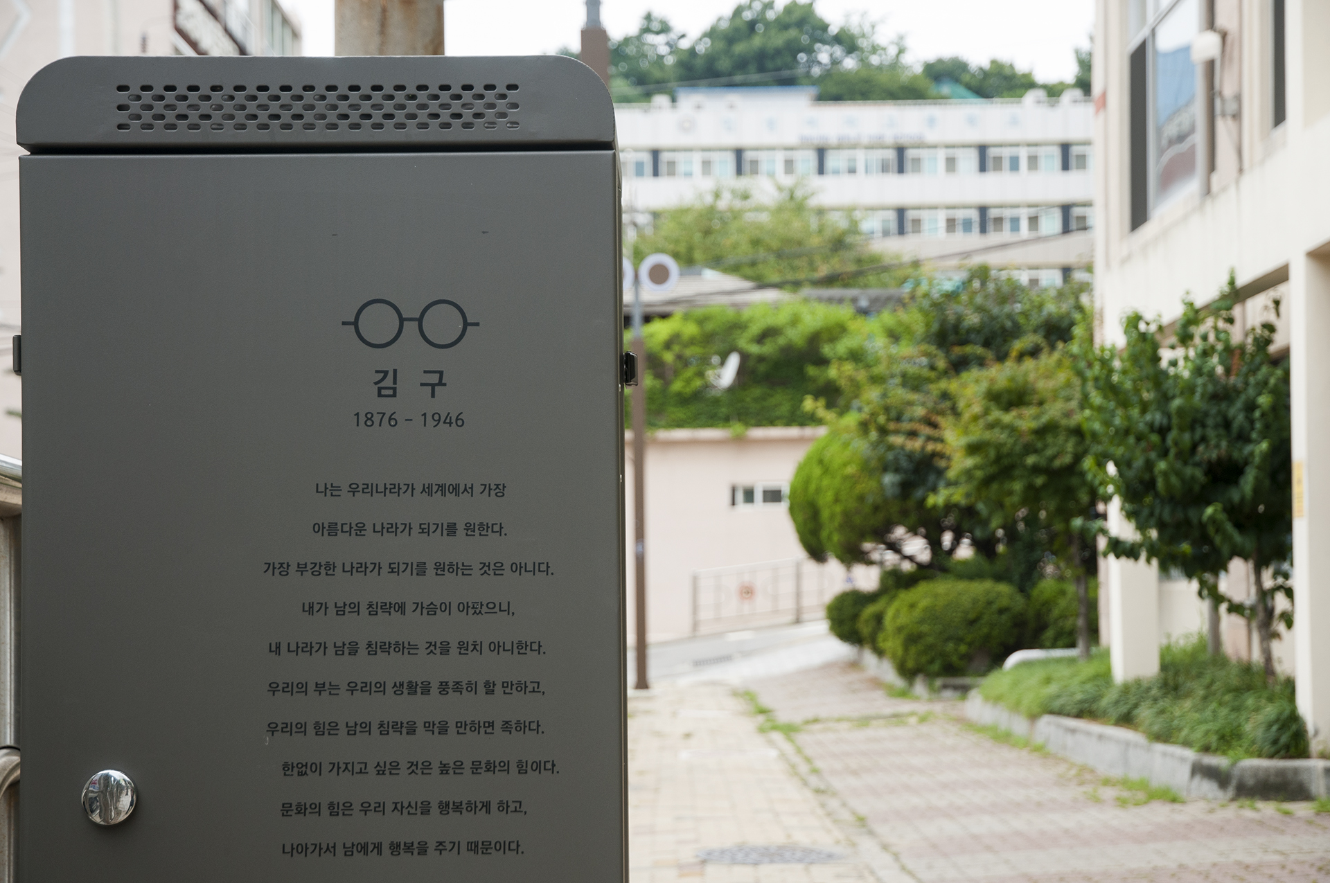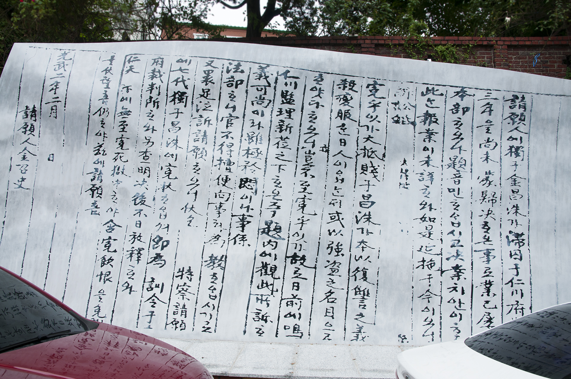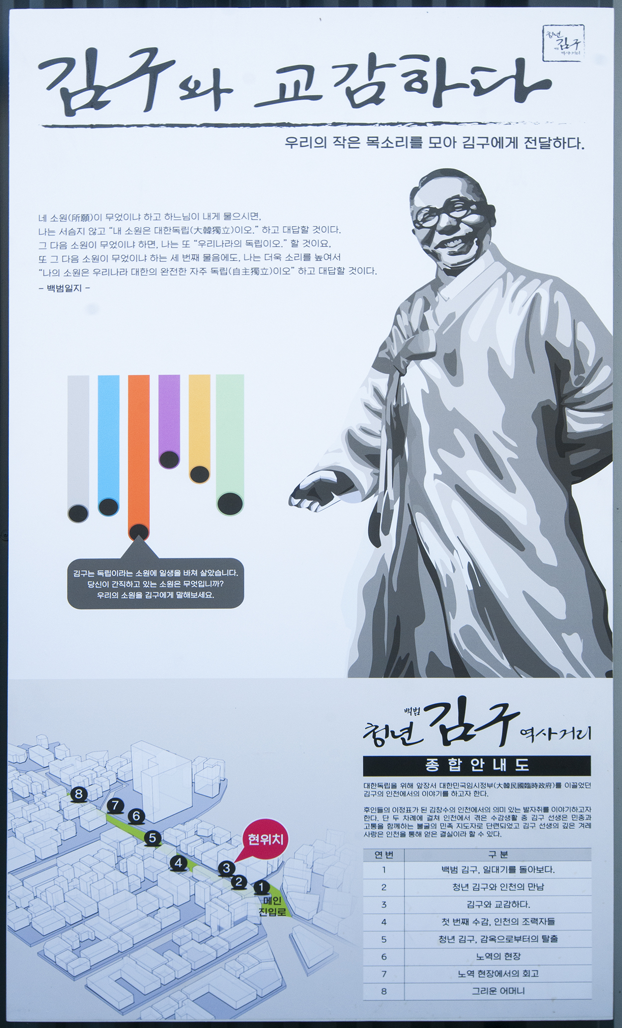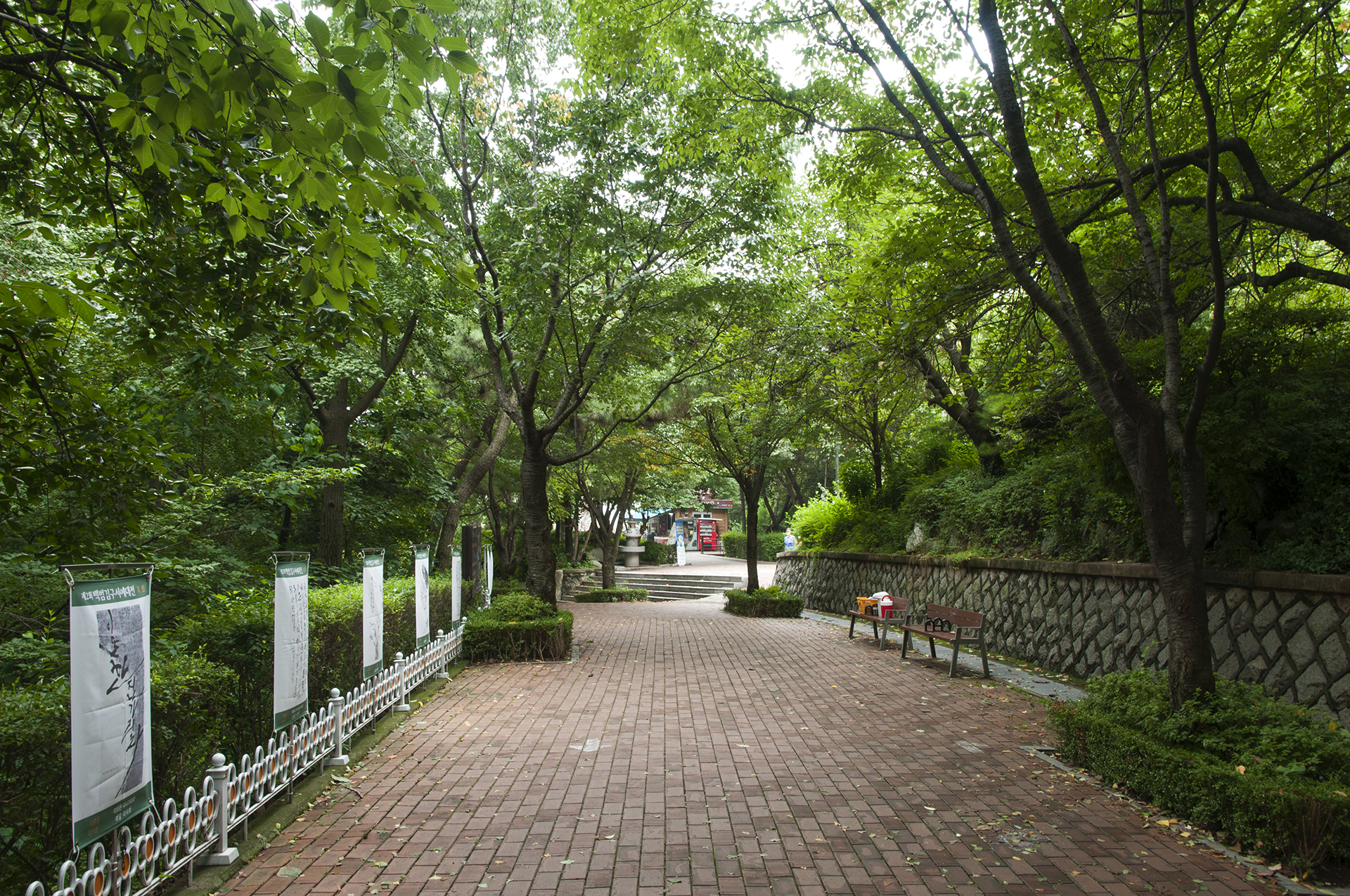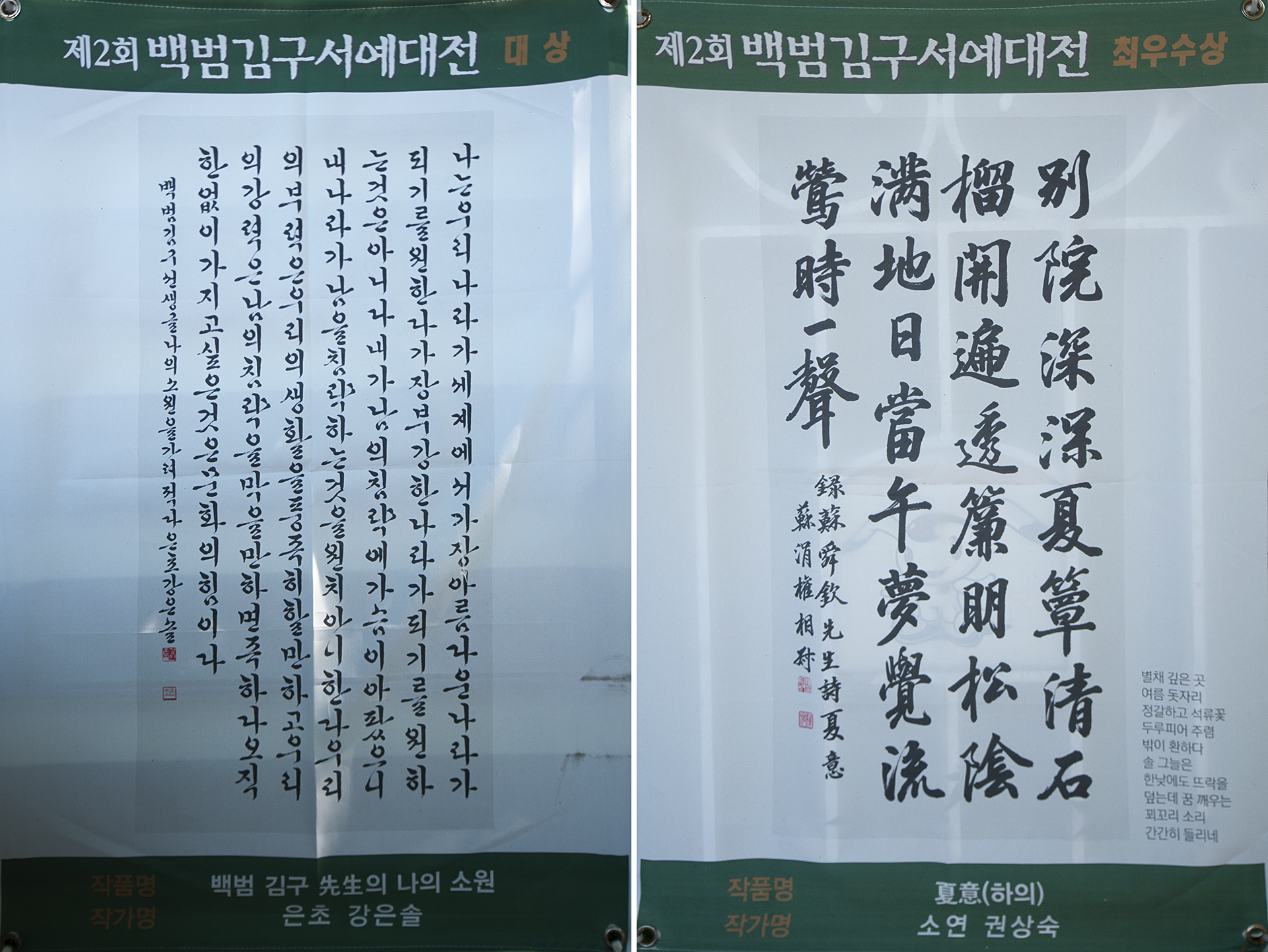 석정루를 나와 가던 길로 계속 진행한다. 자유공원 곳곳에서 제2회 백범김구 서예대전 작품들이 전시되고 있다.