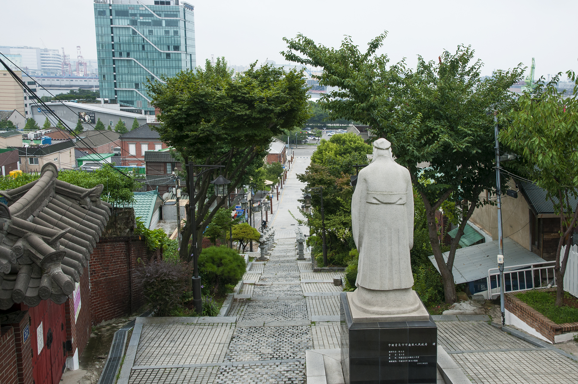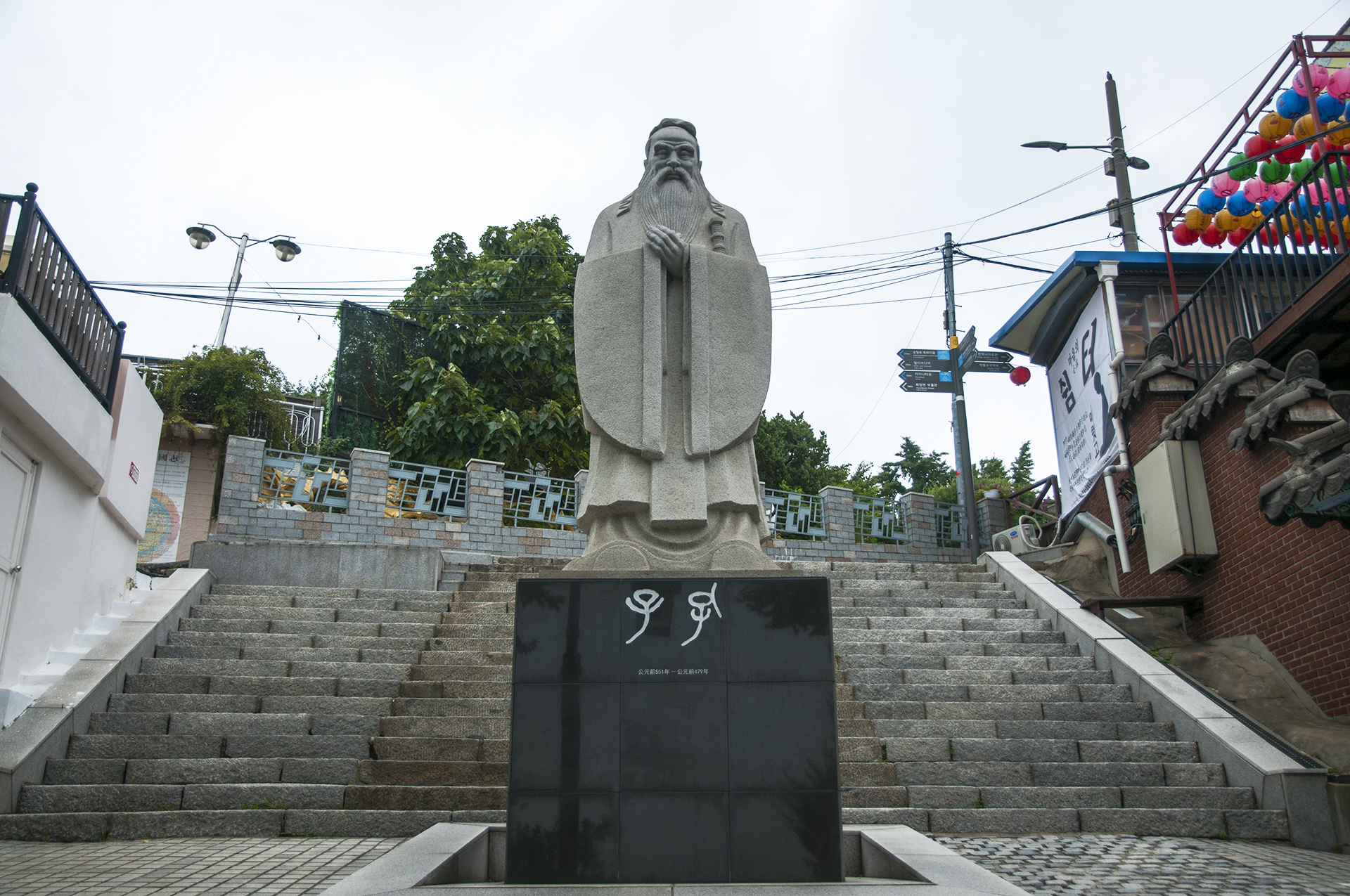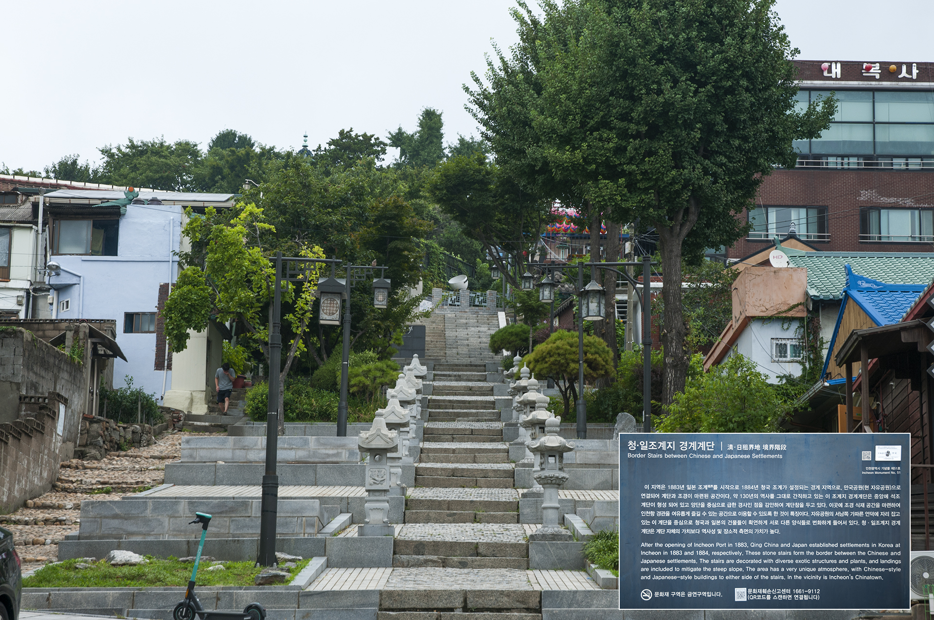 이 계단은 청일조계지 경계계단으로 아래가 내려다 보이는 곳에 공자상이 세워져 있다. 이 공자상은 중국 청도에서 기증한 것이라고 한다.