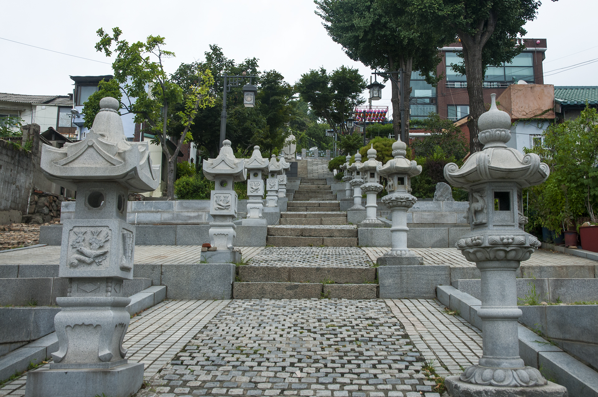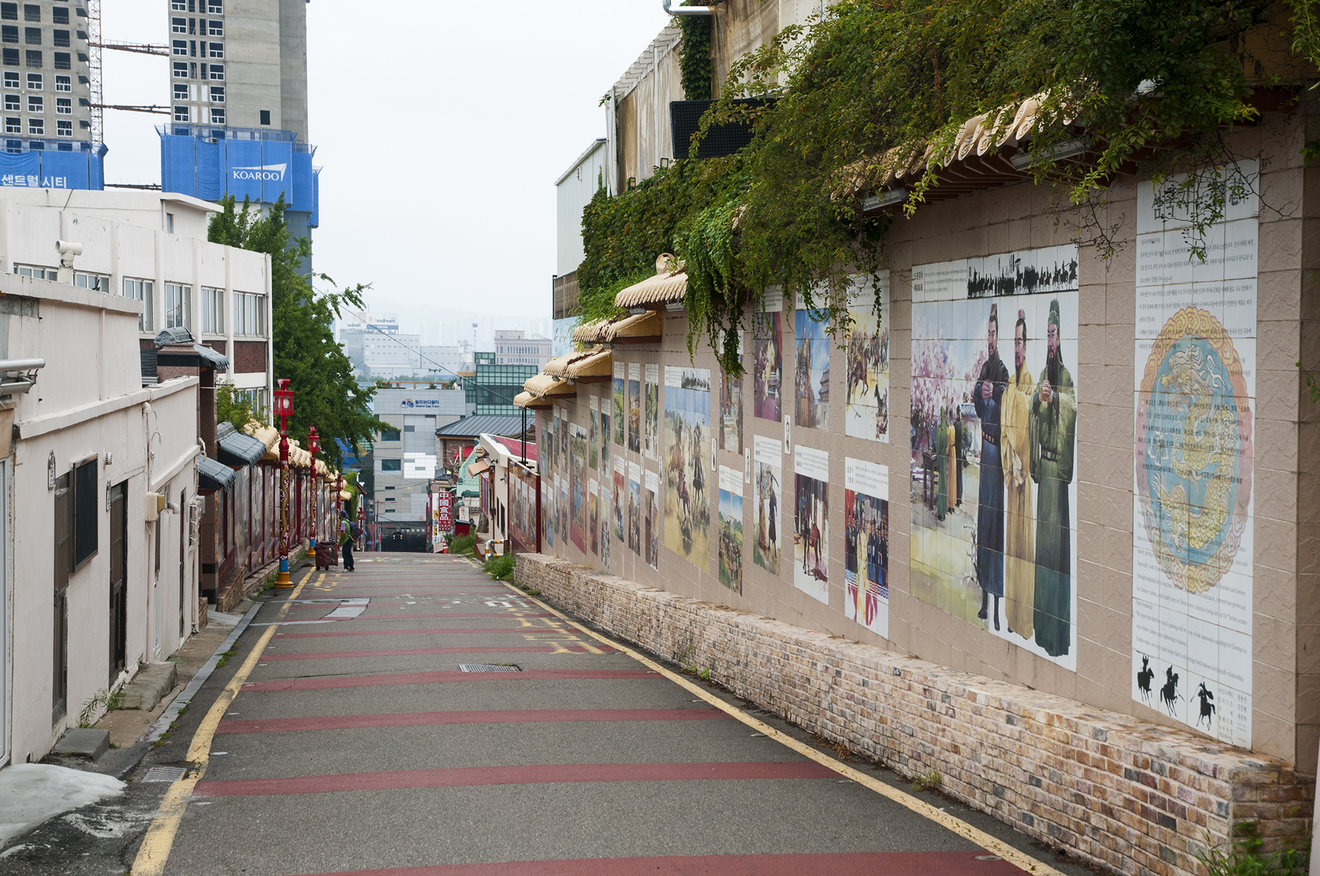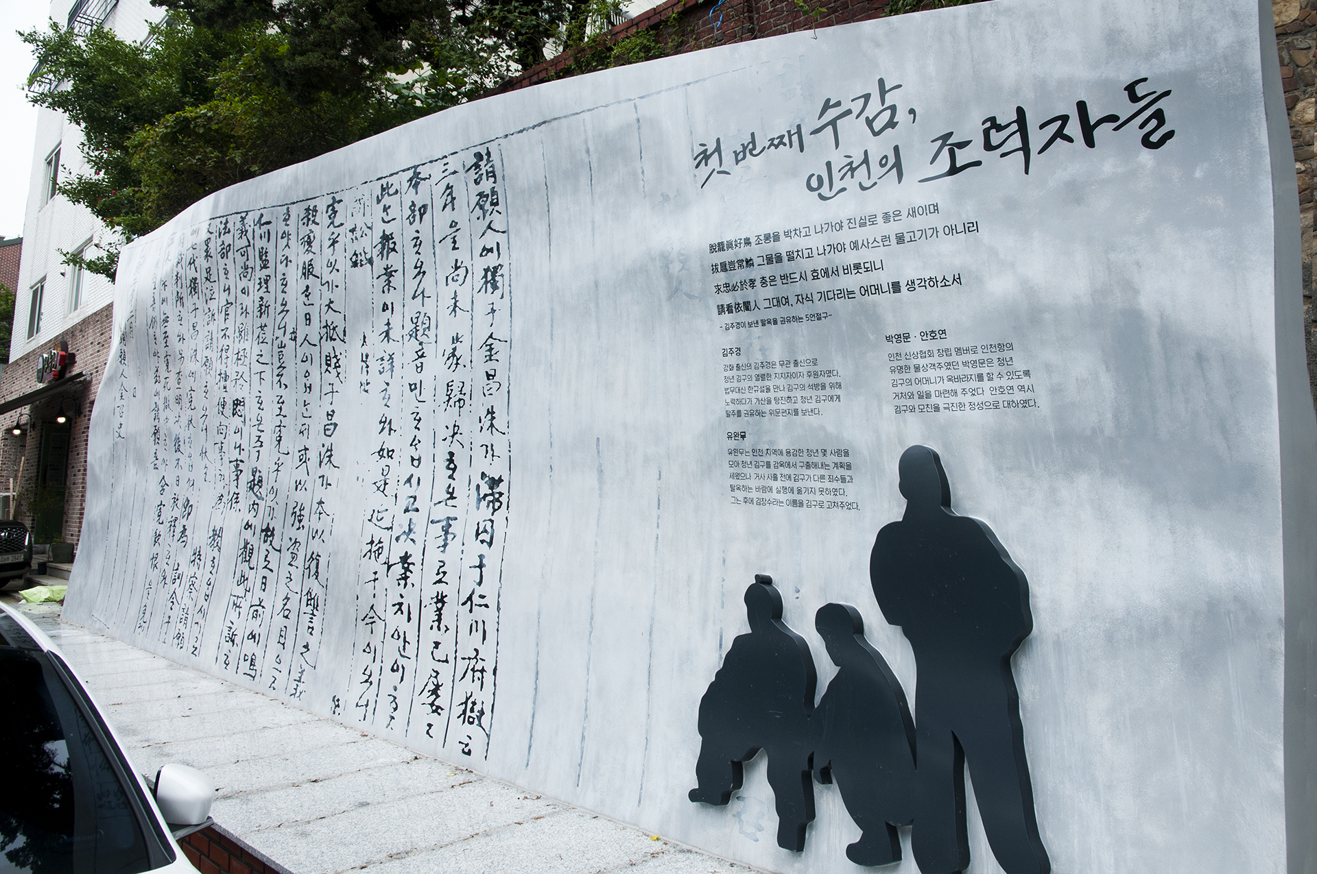 조미수호통상조약 체결지에서 내리막길 양쪽 벽면에 그려진 삼국지 벽화들이 볼만한 거리다.