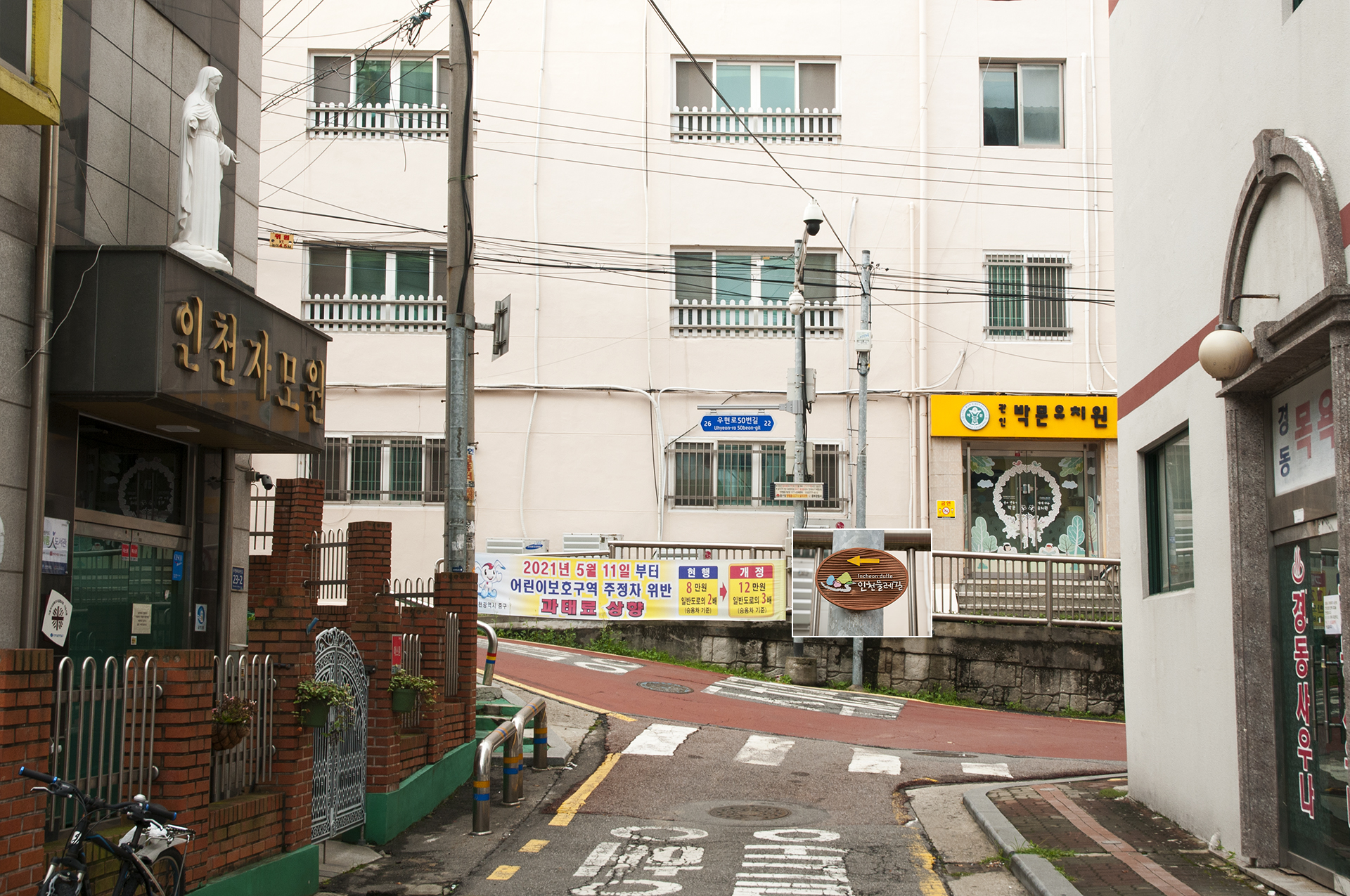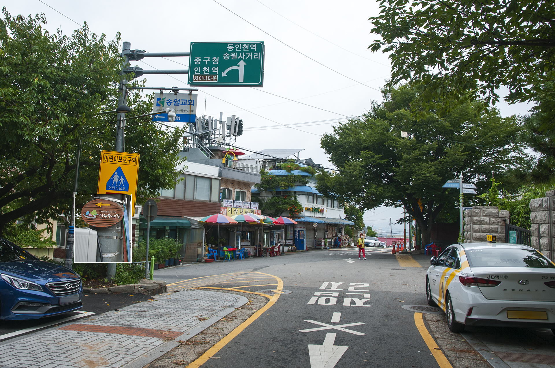 이후에 답동성당에서 나가는 길이 아파트공사 가림막으로 막혀 있어 둘레길이 끊기게 되니 이곳으로 다시 와 박문유치원 앞으로 지나가야 한다.
