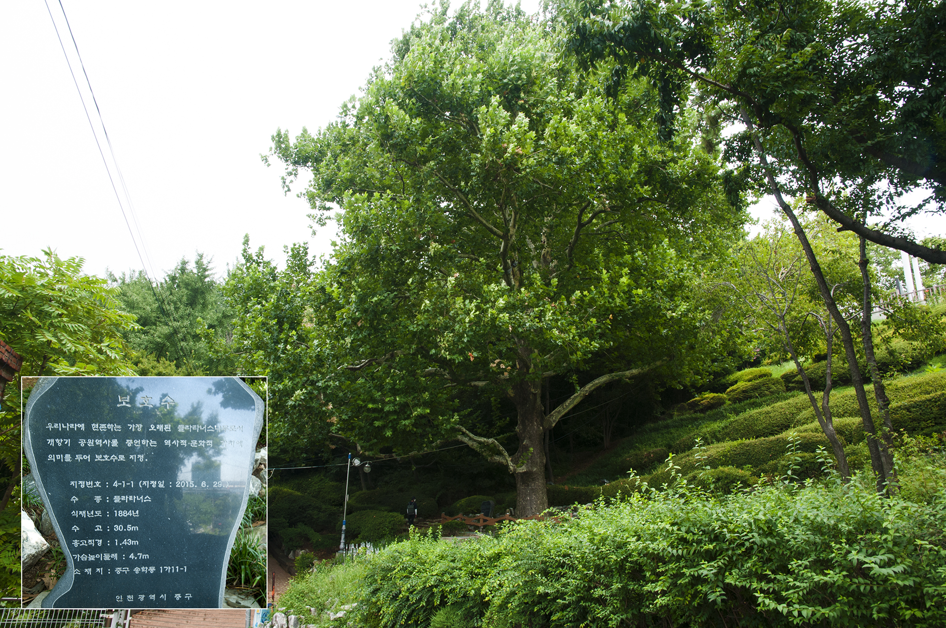개항기의 역사를 고스란히 간직한채 우리나라 최초이자 가장 오래된 이 플라타너스는 인천상륙작전의 포호속에서도 원형을 잃지않고 현재까지 굳건하게 살아 남았다.