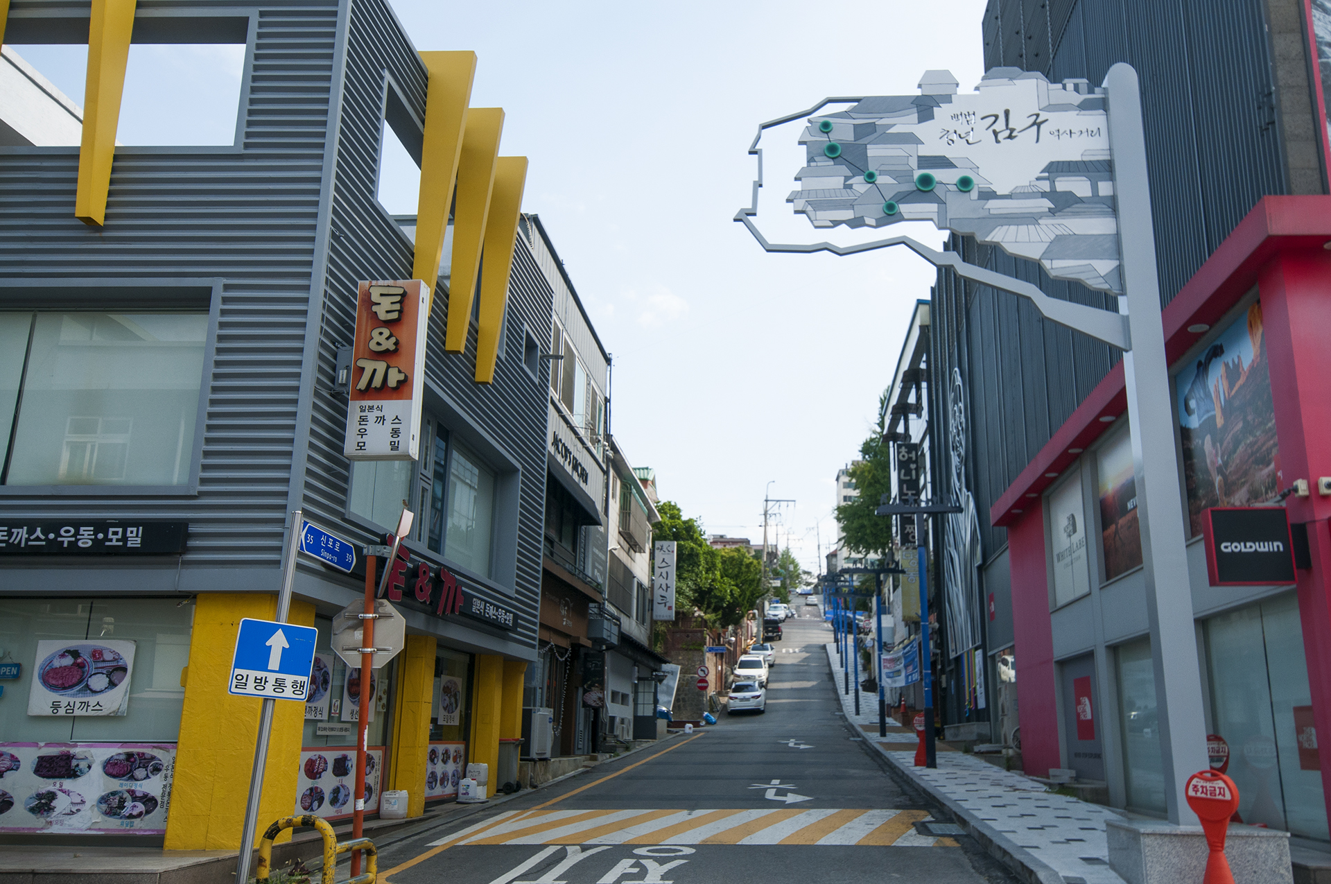 시장 입구 바닥에 둘레길 안내가 그려져 있고, 로고와 리본이 여기저기 걸려있어 이 길로 안가면 안될것 같은 느낌을 준다. 해물과 생선을 파시는 할머니만 아침부터 홀로 바쁘실뿐 중앙시장처럼 이곳도 아직은 문을 열지 않았다.