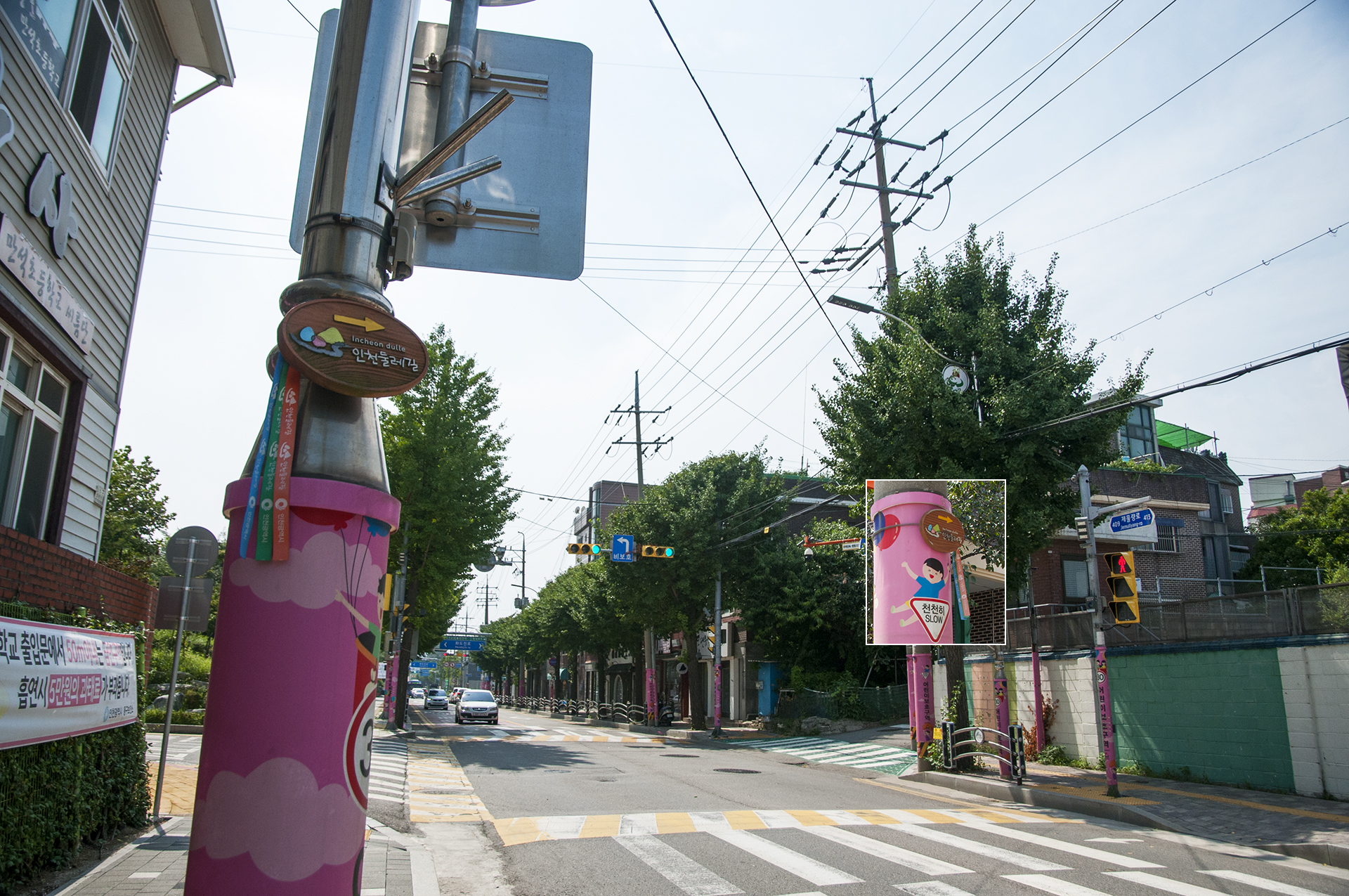 로드맵으로 확인해보니 참고 사진처럼 예전에는 행복한약국 옆 골목으로 '화평로30번길'이라는 이정표가 세워져 있었는데, 현재는 이정표 기둥이 없어지면서 매달려 있던 둘레길 로고도 함께 사라져버린 것이었다.