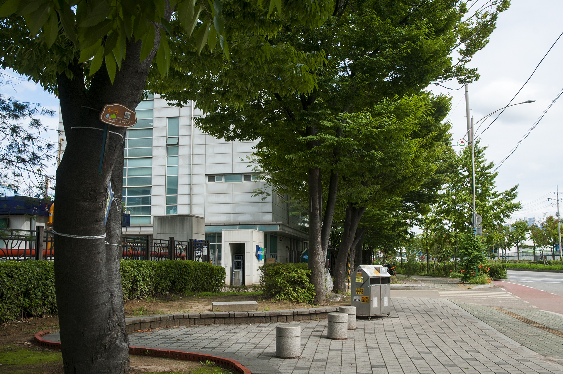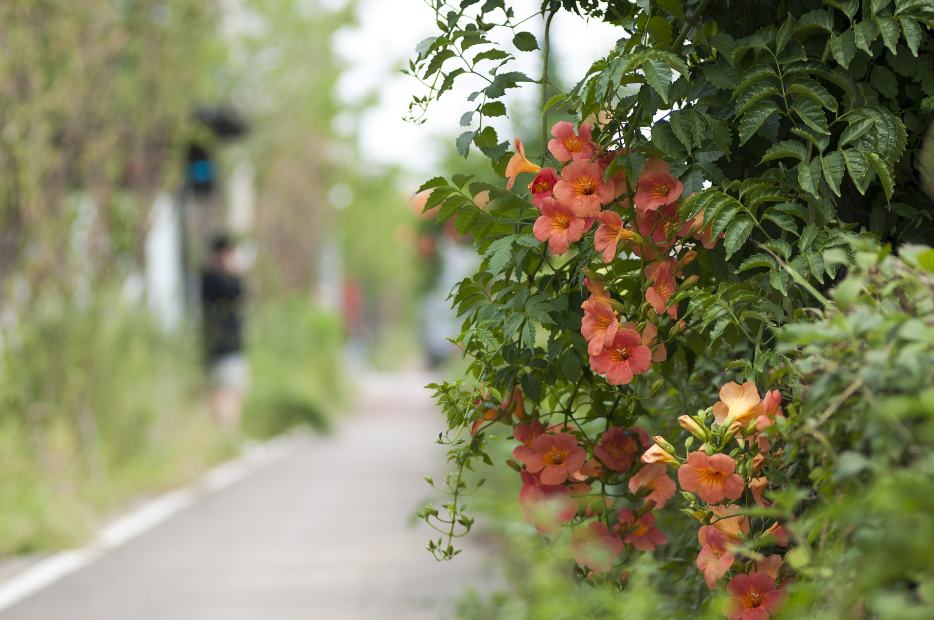 두산 인프라코어 앞 길로 600m 가량을 직진으로 걸어야 한다. 그나마 가로등마다 매달린 능소화가 이 길이 지루하지 않게끔 도와준다.