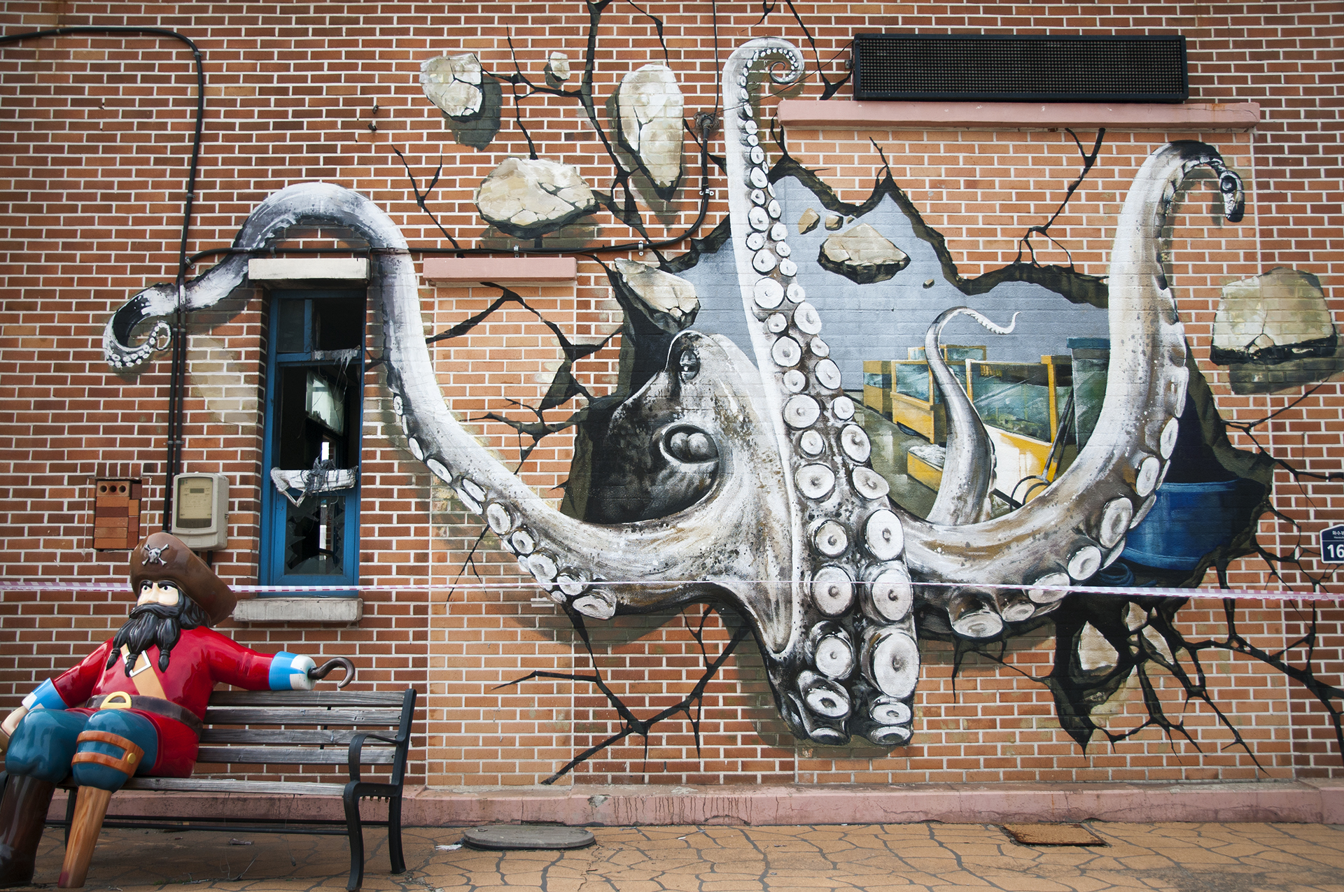 화수부두 수산물 직매장 벽에 그려진 대형 문어