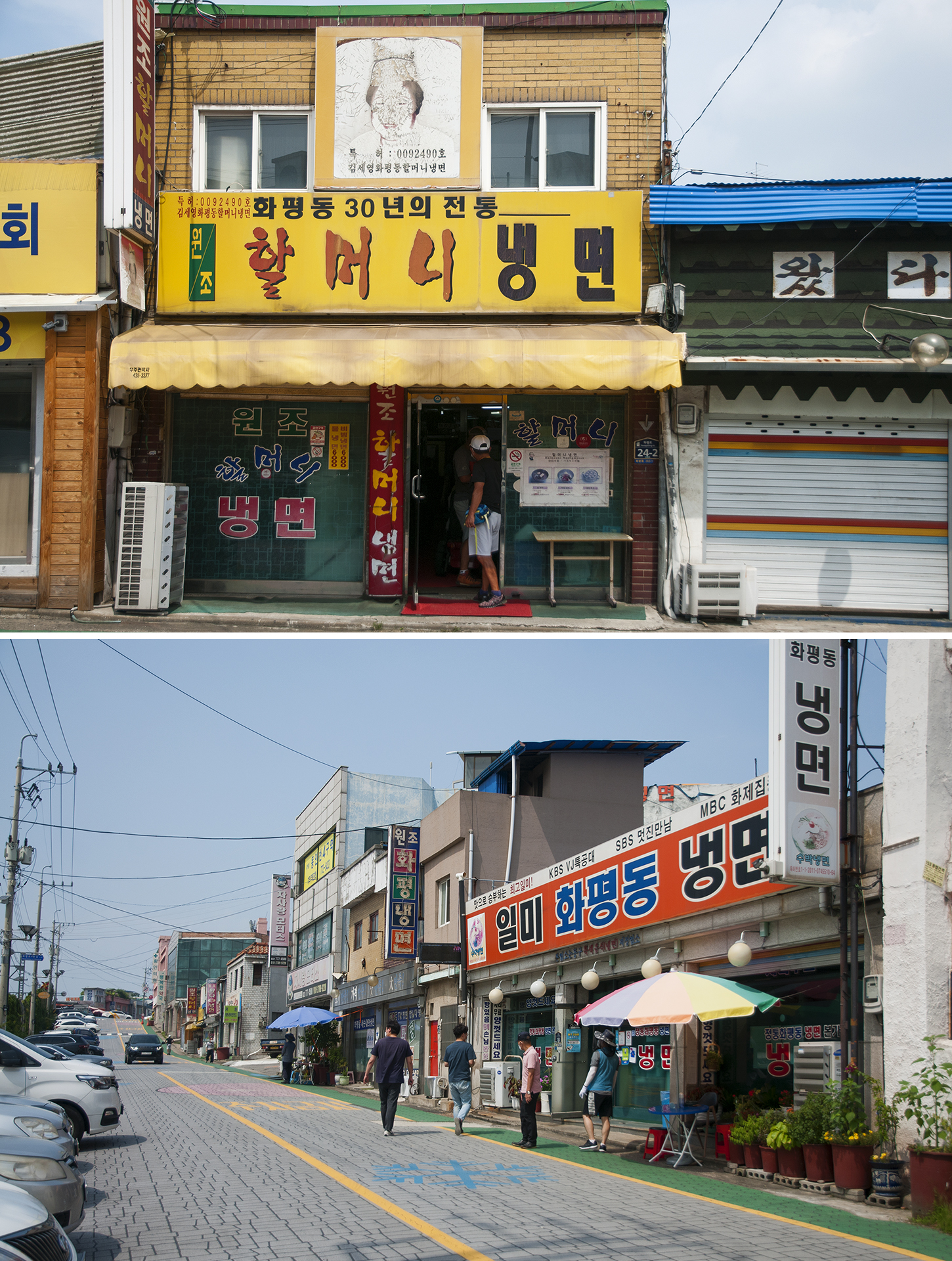 길을 따라 아래로 냉면집들이 길게 이어지지만 예전보다는 그 수가 많이 줄은듯 보였고, 주차장 쪽은 깨끗하게 정비된 모습이다.