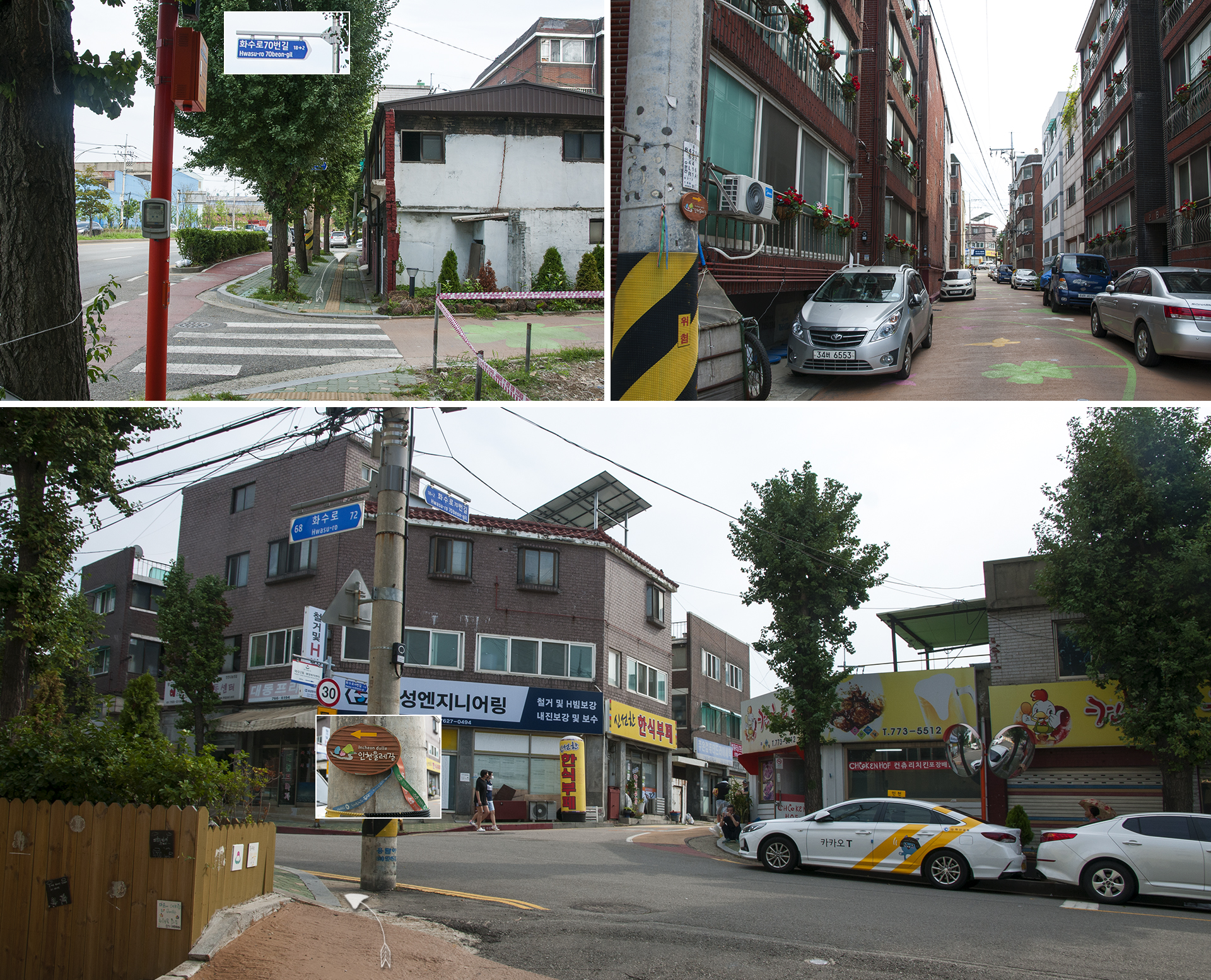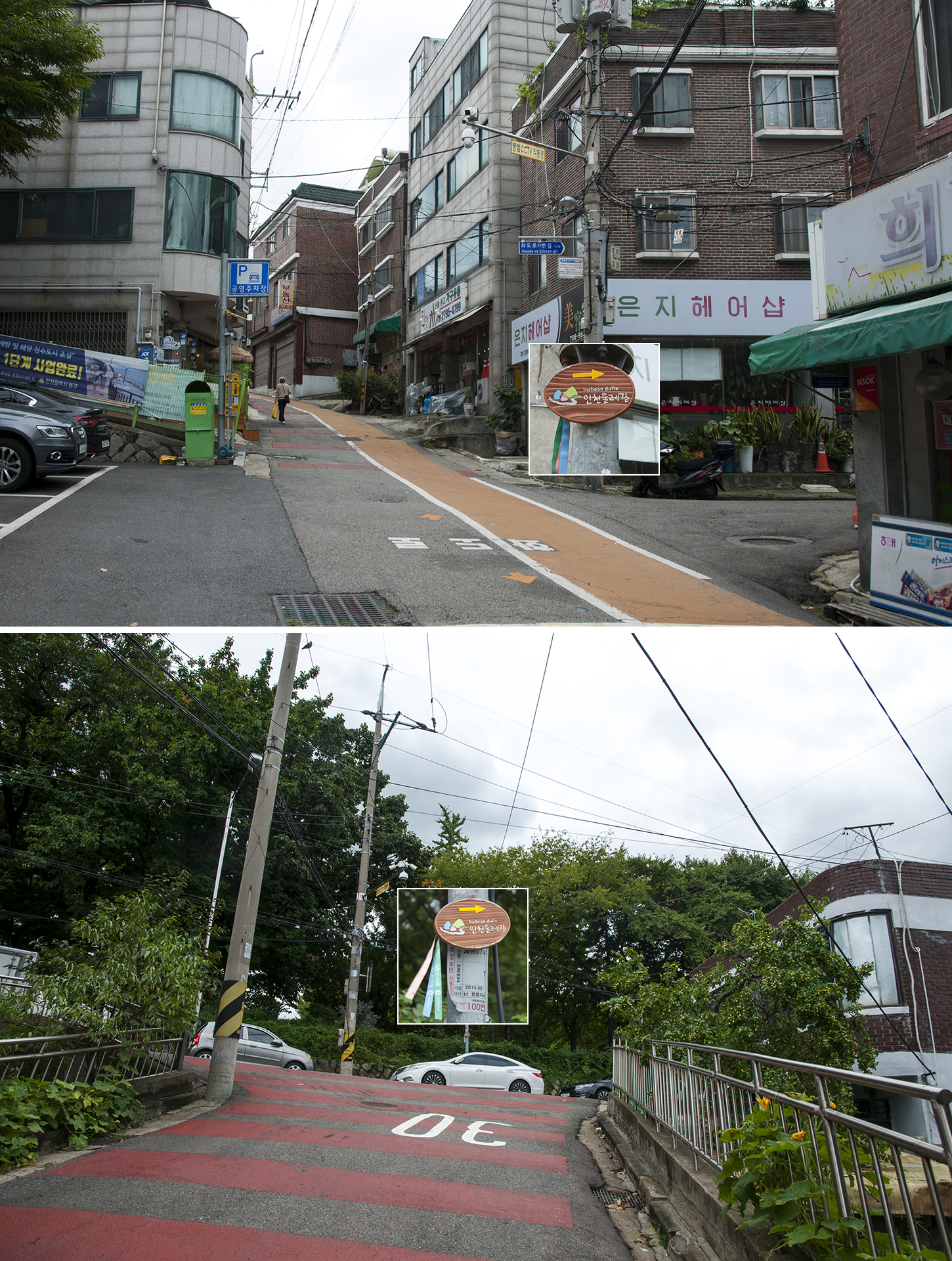 편의점 골목을 100m 정도 올라온 후 제일기름집 5거리에서 화도교회 방면으로 진행한다. 바닥에 안내가 붙어있으니 길찾기가 수월하다.