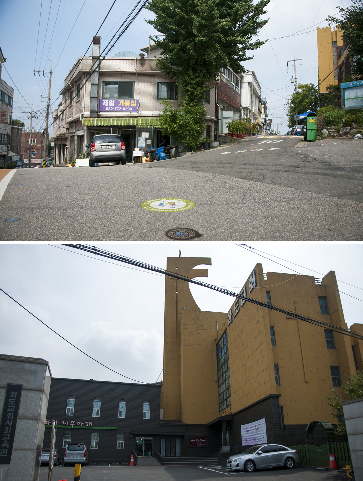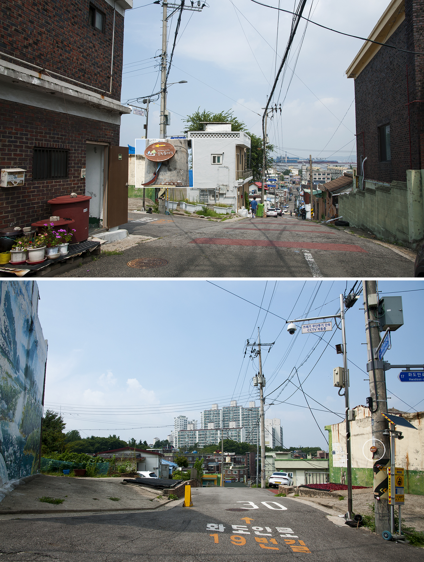 화수부두를 뒤로하고 다시 들어온 길을 나간뒤 화수사거리에서 횡단보도를 건너 좌측으로 간다.