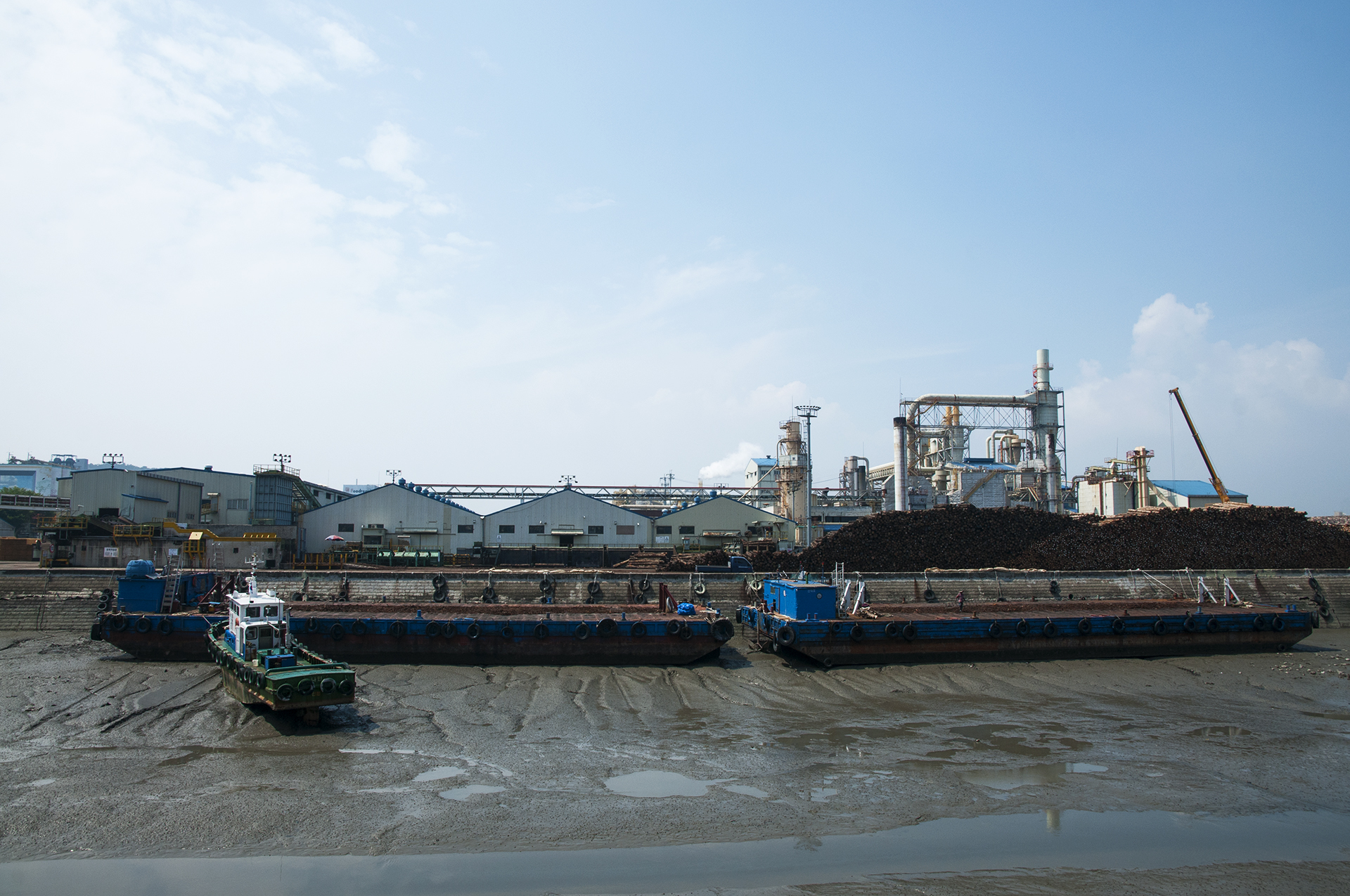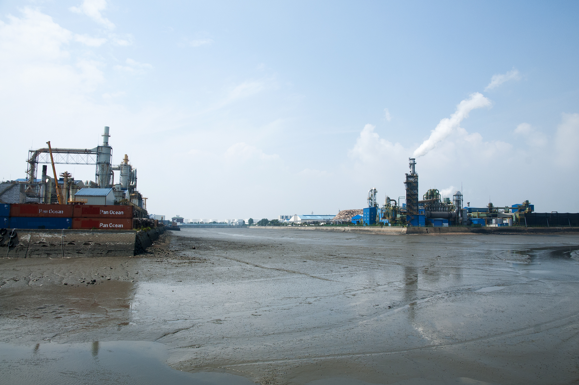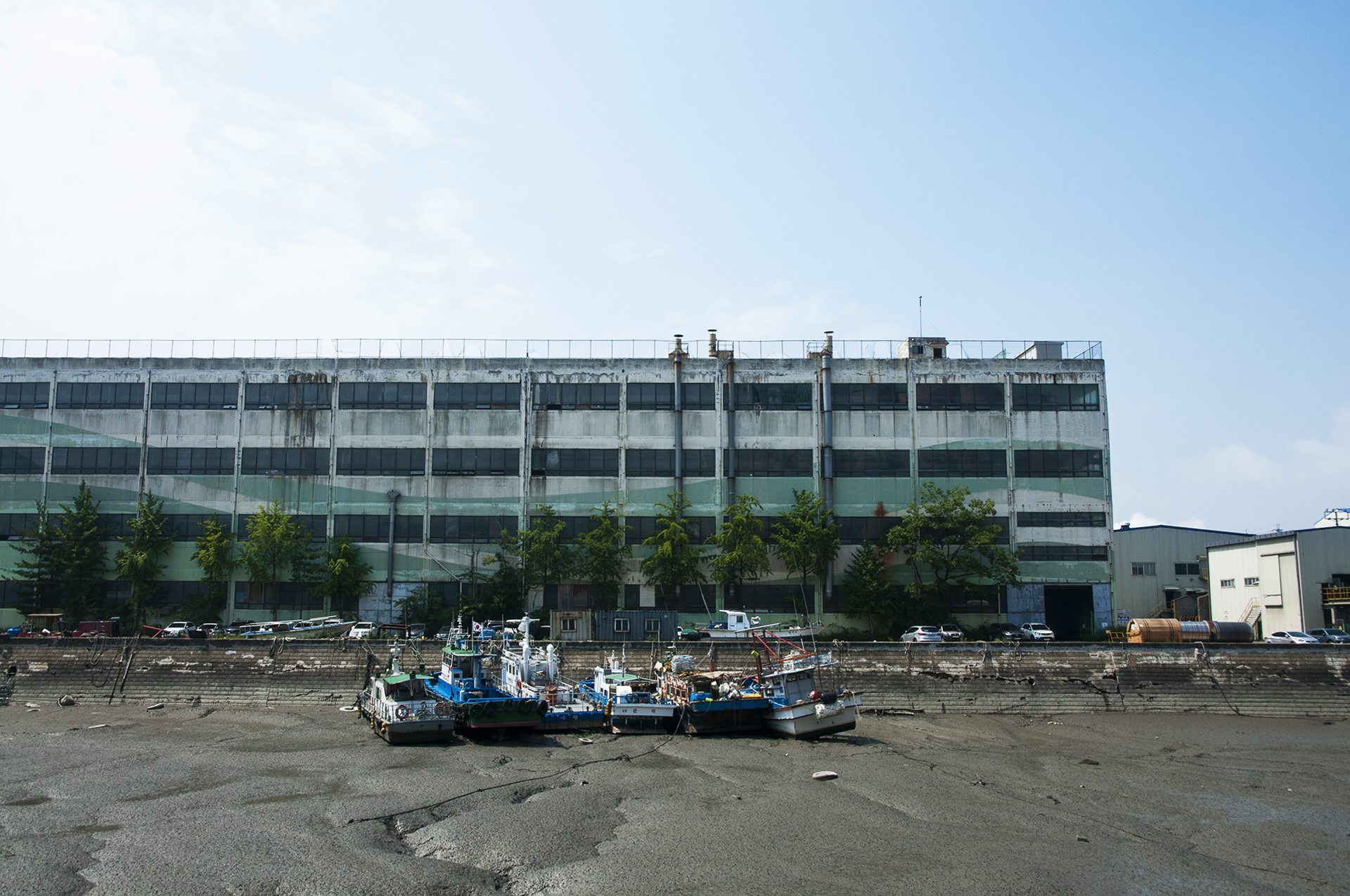 시장 뒷쪽 배가 들어오는 포구가 훤히 보이는 지점에서 바라본 대성목재 공장과 갯벌