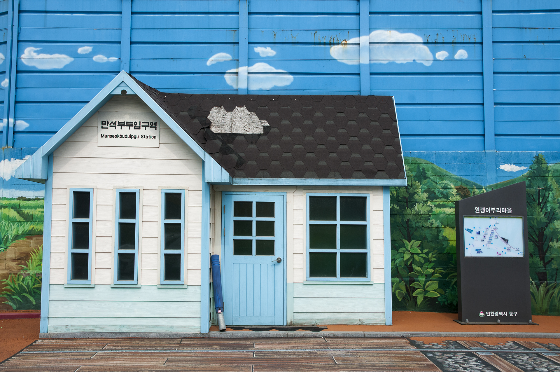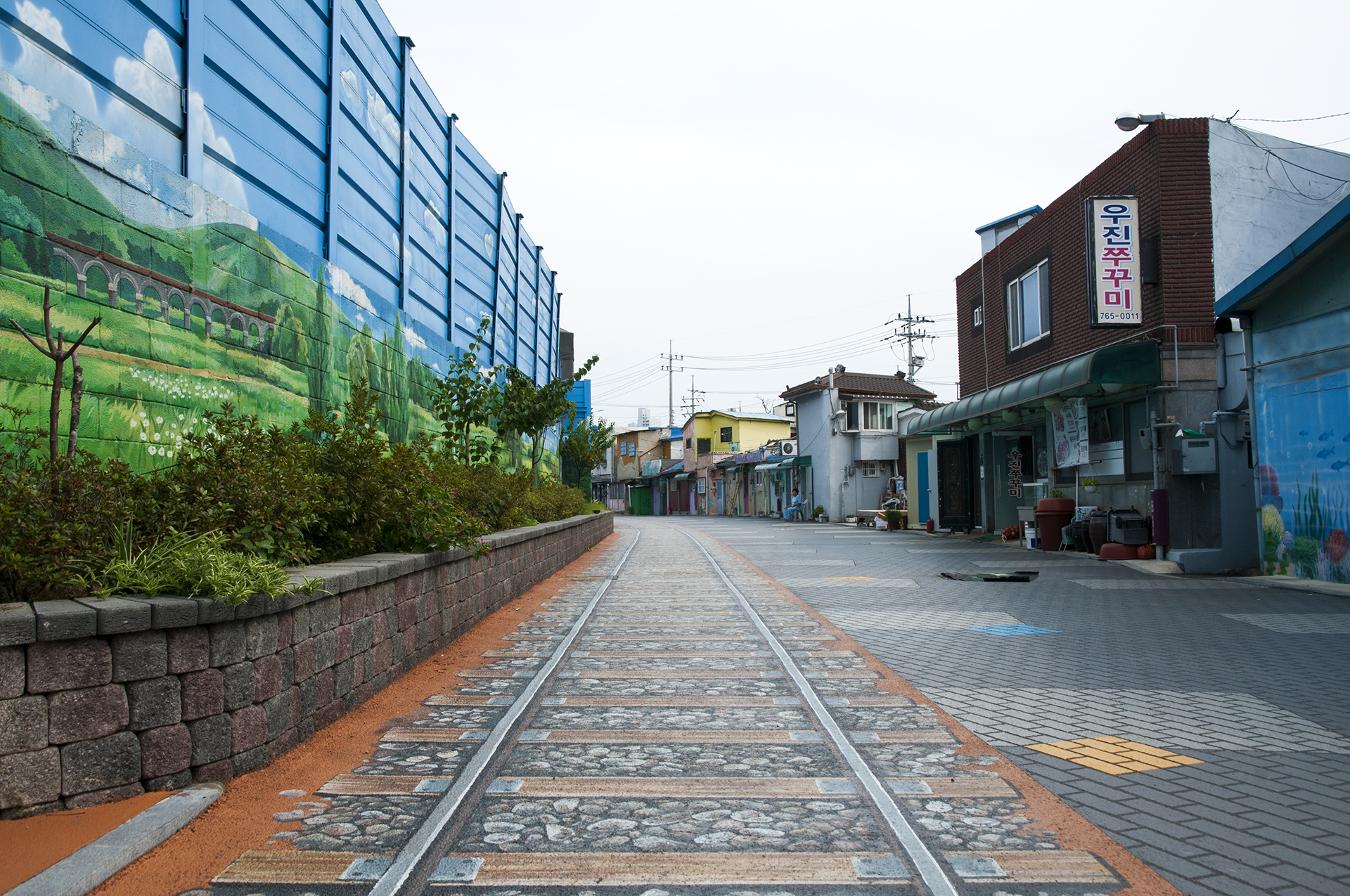 만석부두에서 다시 나와 원괭이 새뜰마을에 도착했다. 이곳은 기찻길을 테마로 조성된 특화거리 마을이다.