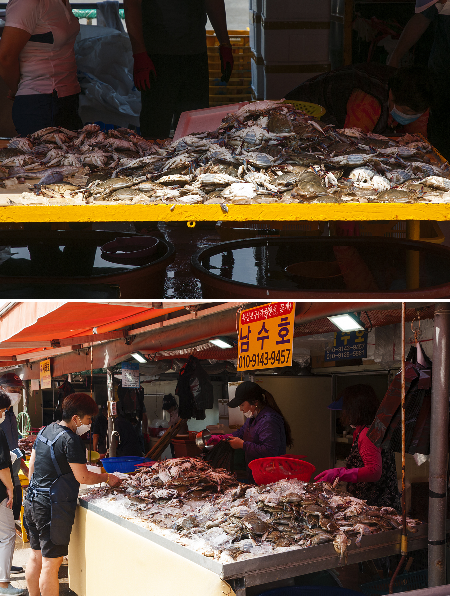 짧은 구간에 시장이 형성되어 있는데 대부분 싱싱한 꽃게를 판매하고 있었다.