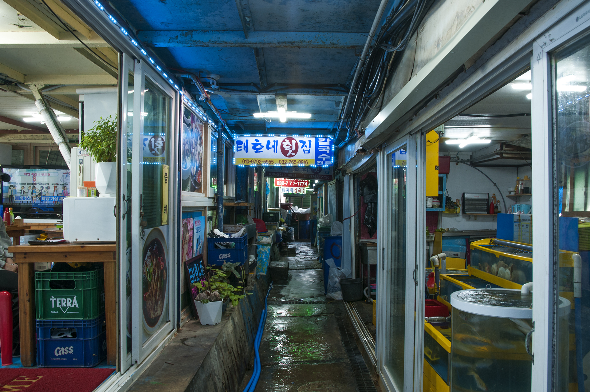 안으로 들어가면 횟집 식당들이 영업을 하고 있다.