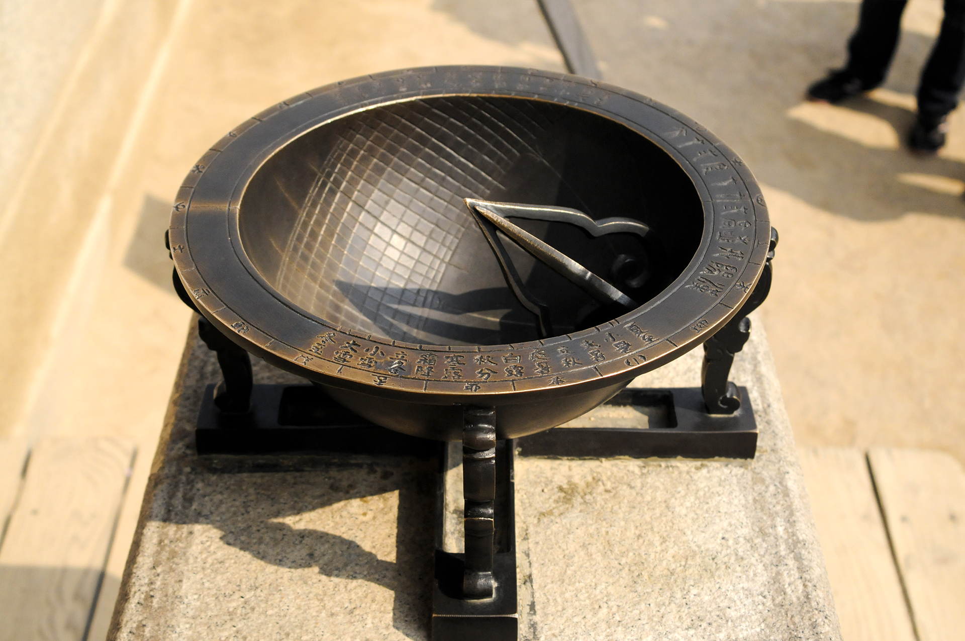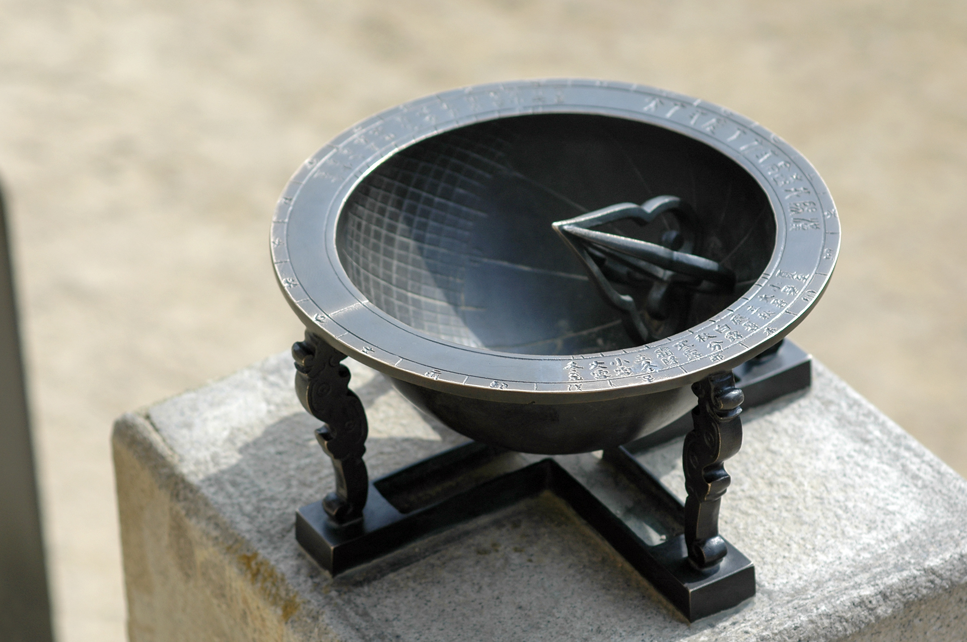 청동의 오목판 안바닥에는 일곱 개의 세로줄이 그려져 있는데, 이를 시각선이라고 한다. 해가 동쪽에서 떠서 서쪽으로 지면서 생기는 그림자가 이 시각선에 비쳐지면서 시간을 알 수 있다. 바닥에는 시각선 이외에 열세 개의 가로줄이 그려져 있는데, 이는 24절기를 나타낸다. 제일 바깥줄은 동지의 해 그림자가 따라가는 줄이며, 제일 안쪽 줄은 하지선이라고 하니 얼마나 과학적인지 우리문화에 대해 자긍심을 가지게 된다. 이것은 복제품으로 진품은 국립고궁박물관에 소장되어 있다.