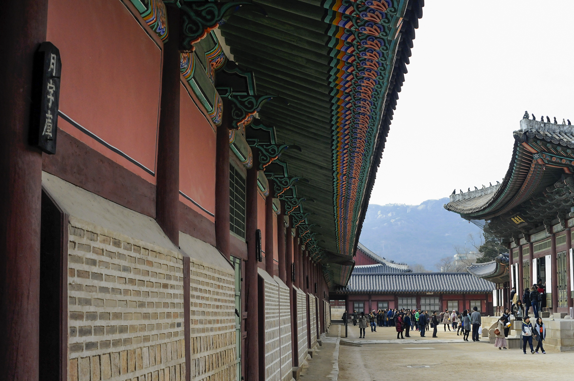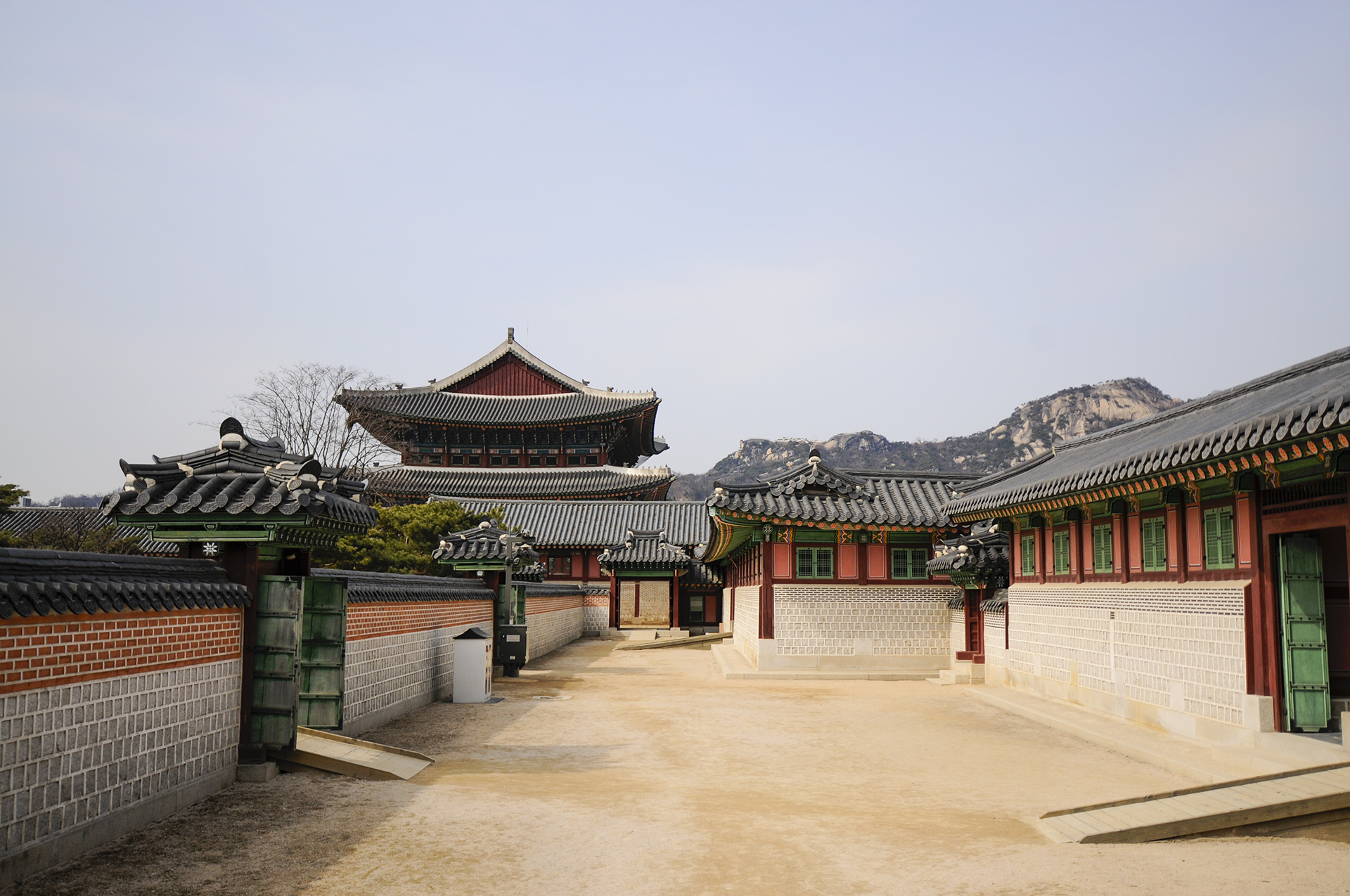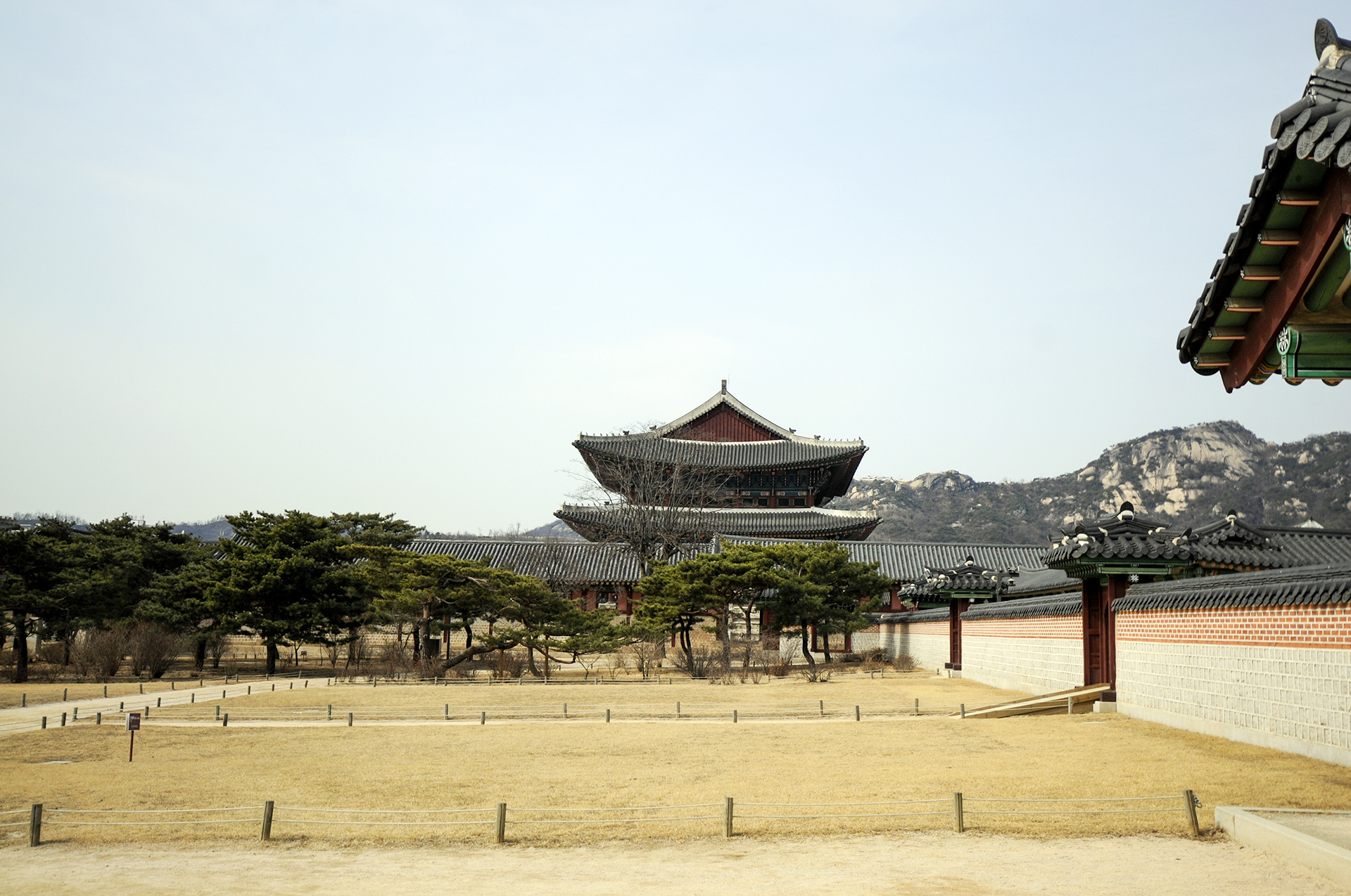 동궁 영역에서 뒤돌아보면 인왕산을 배경으로 근정전의 웅장한 전각이 한눈에 들어온다.