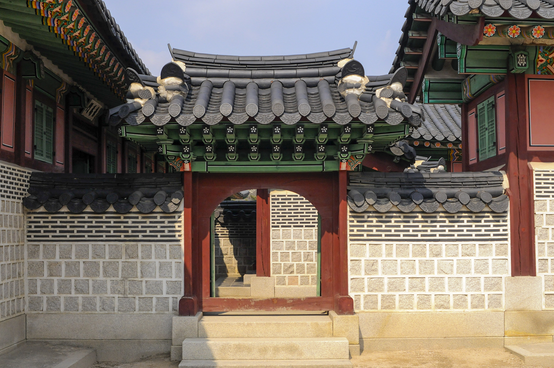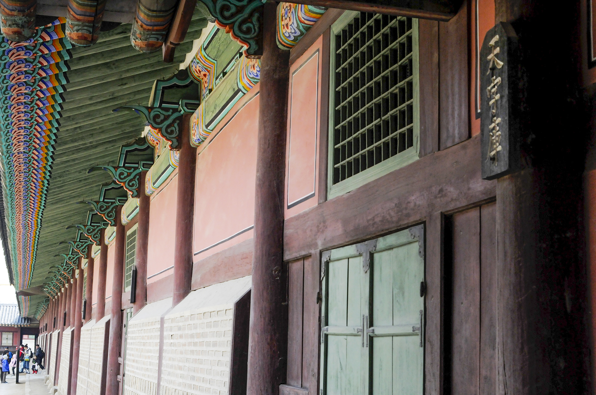 사정전 동행각의 남쪽에 있는 문이다. 밖에서 본 모습.