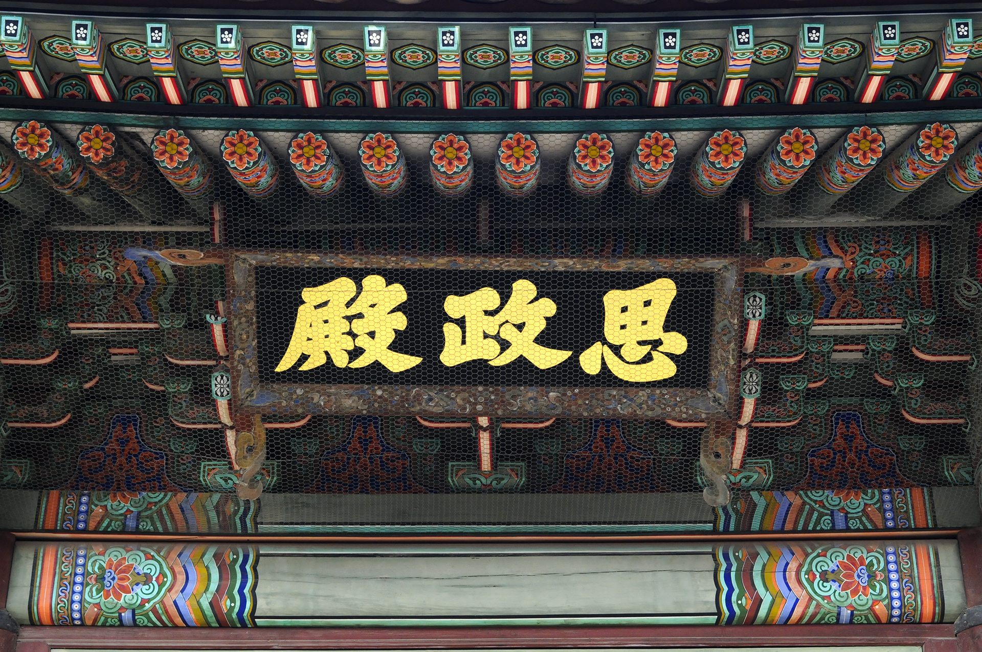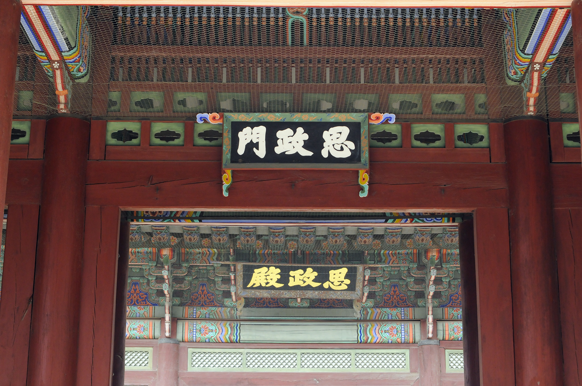 근정전 북쪽에 사정전으로 통하는 사정문 있다. 사정문은 3칸으로 되어 있으며 이 문 역시 가운데 칸은 왕이 드나들 때 사용하였고, 신하들은 좌우의 문을 이용하였다. 사정문 아래로 사정전의 현판이 보인다.
