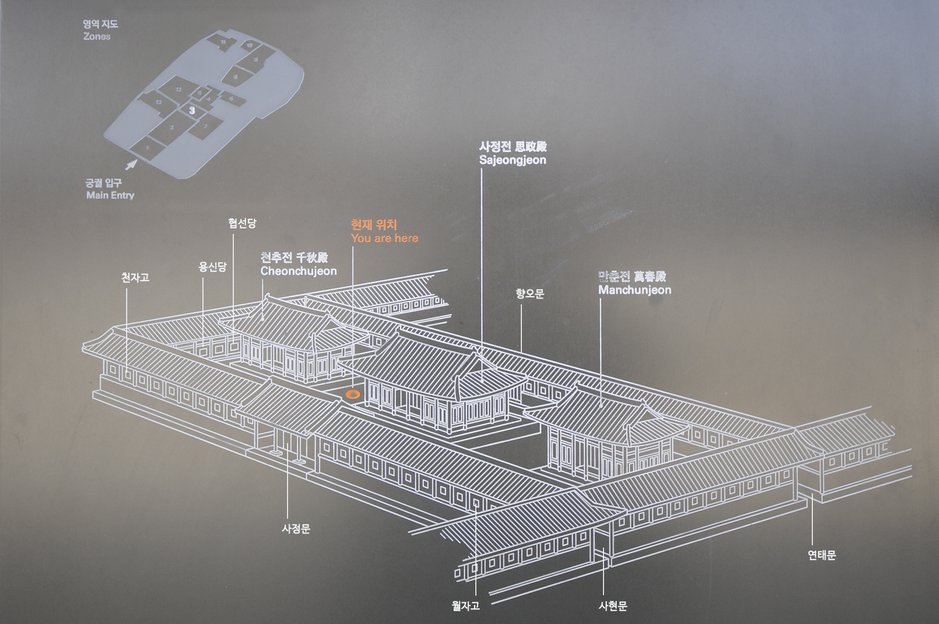 잘 살피지 않으면 모르고 지나쳐 버릴 수 있는 위치에 있다. 궐내의 칙소 관리와 청소는 전연사가 담당했다고 한다.