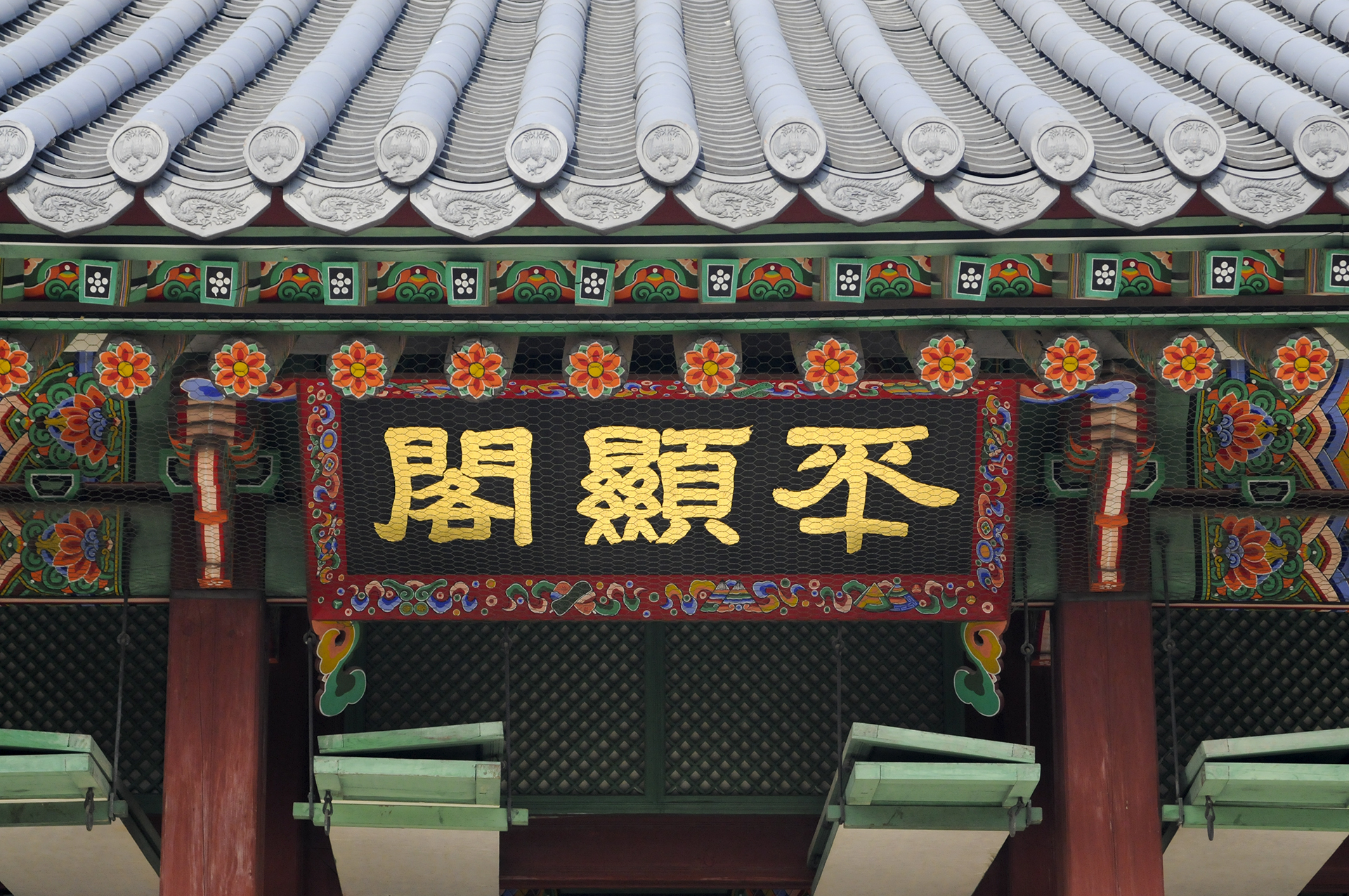 1999년에 설치된 현판으로 중요무형문화재 각자장 기능 보유자 오옥진이 쓰고 새겼다.