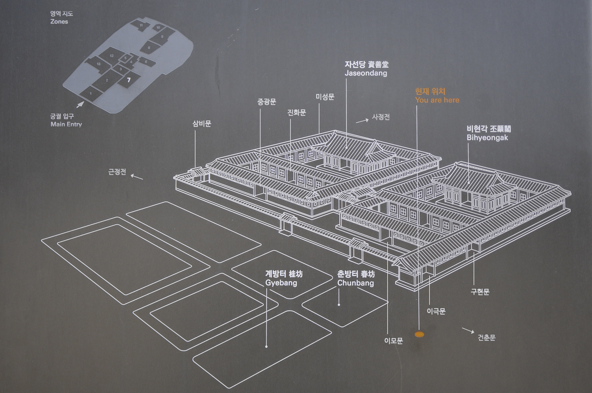 남쪽 진화문에 딸려있는 것으로 여러개의 방으로 구성되어 있다.