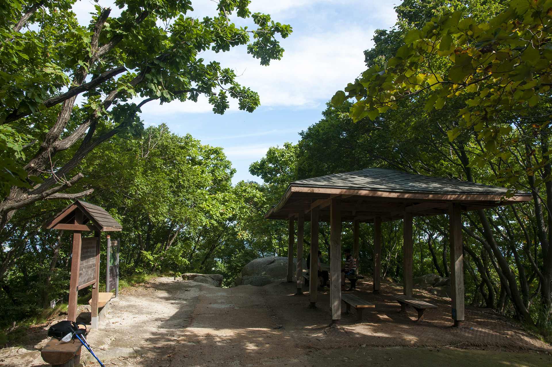 쉼터 도착, 해발 206m 지점이니 고도상으로는 산을 절반은 내려온 셈이다.