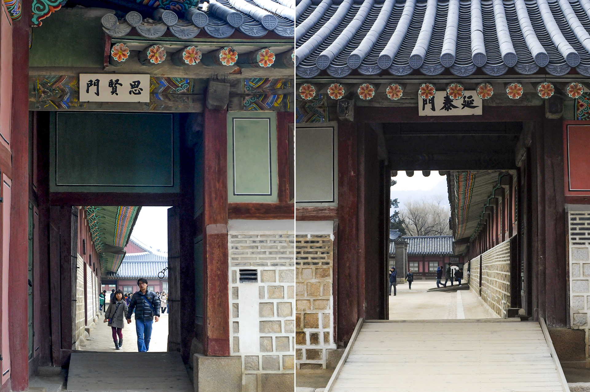 중광문은 자선당의 남쪽에 딸린 문으로 2개의 출입문으로 되어있다. 중광문 앞에 진화문이 보인다.