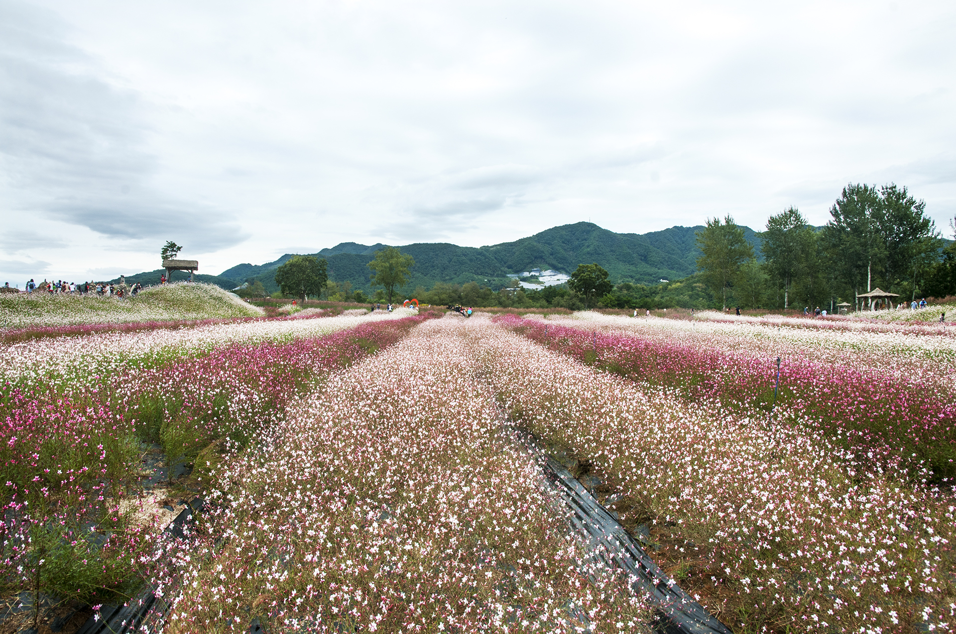 입구를 따라 들어가다가 왼편에는 나비바늘꽃으로도 불리는 가우라가 눈꽃같은 풍경을 보여준다.