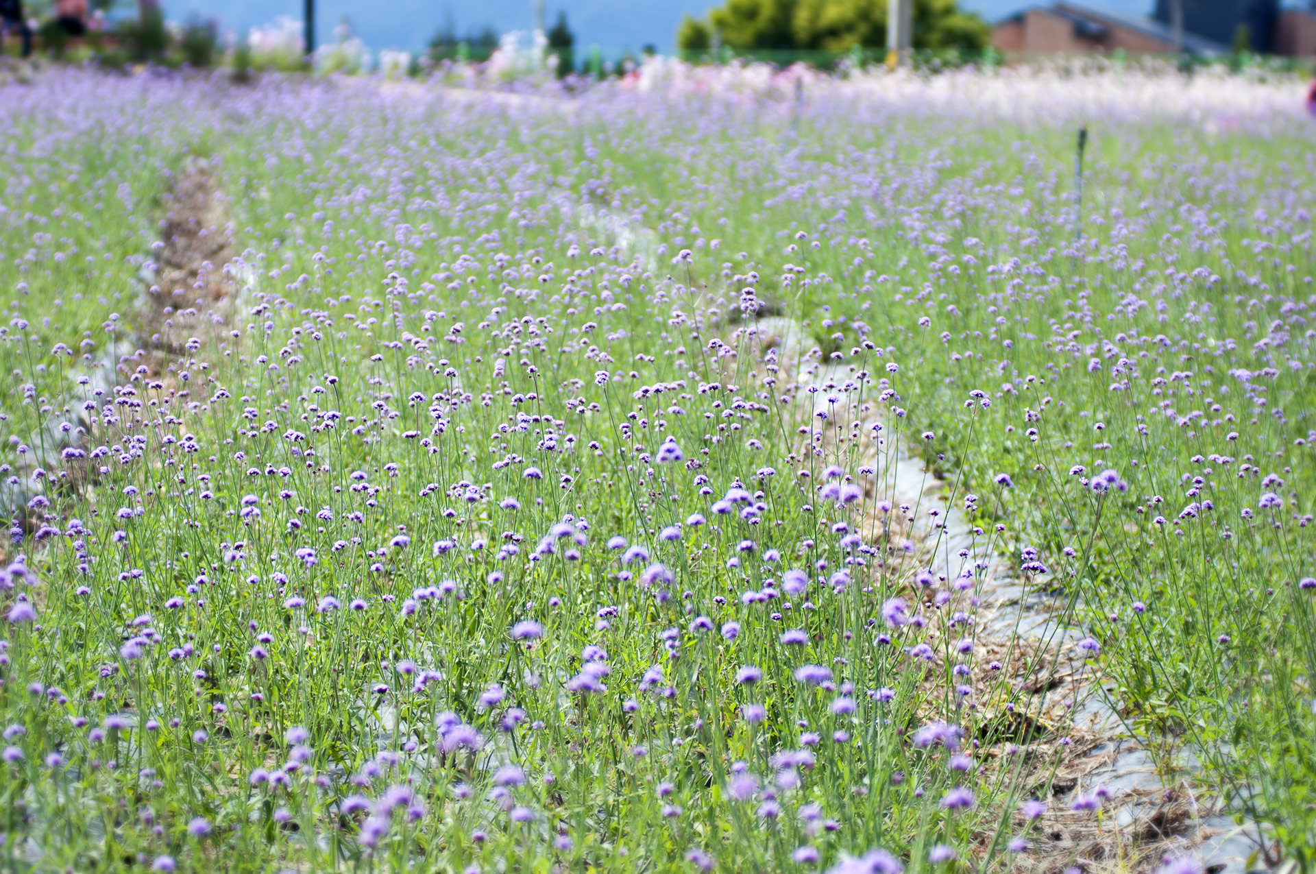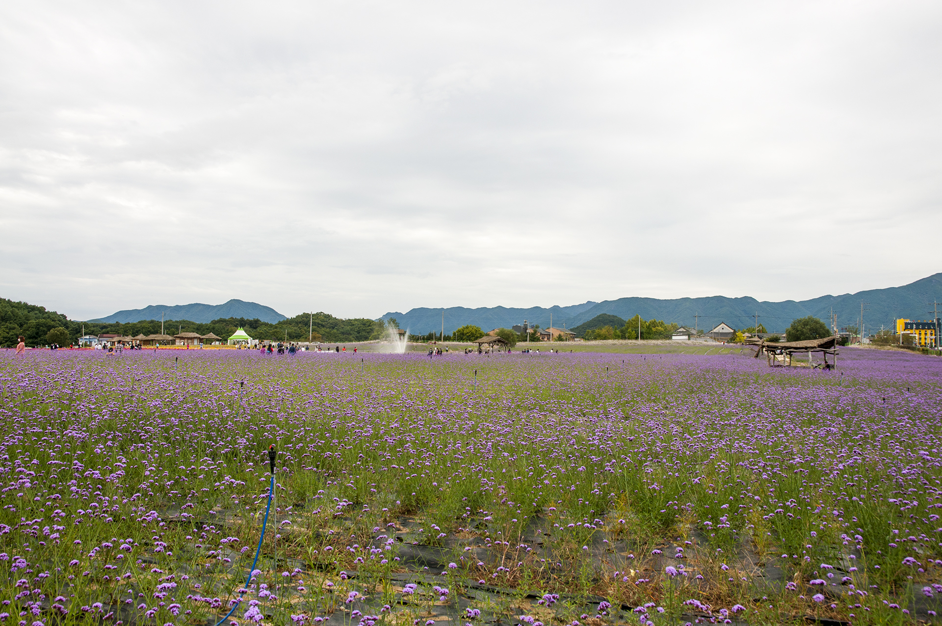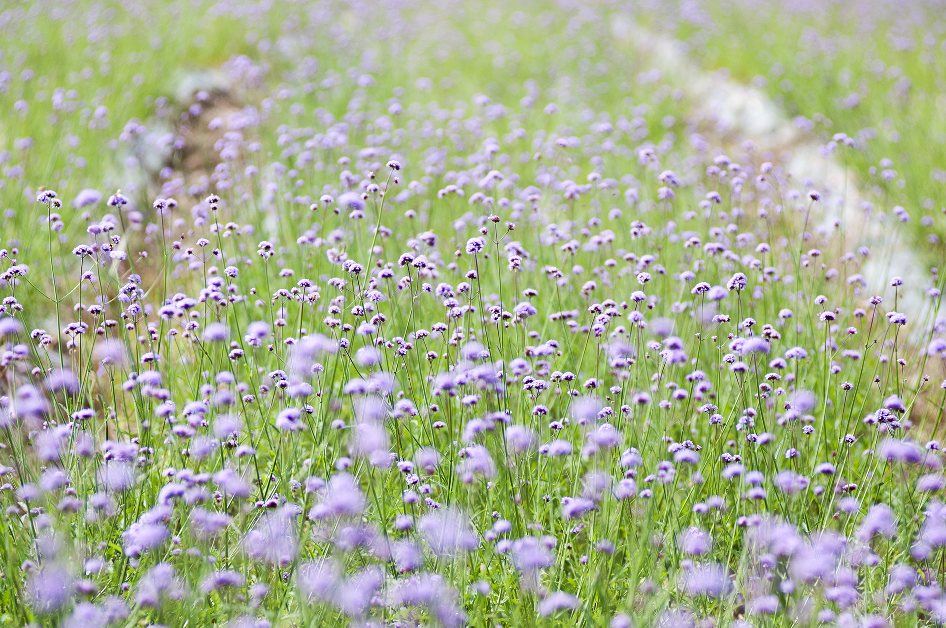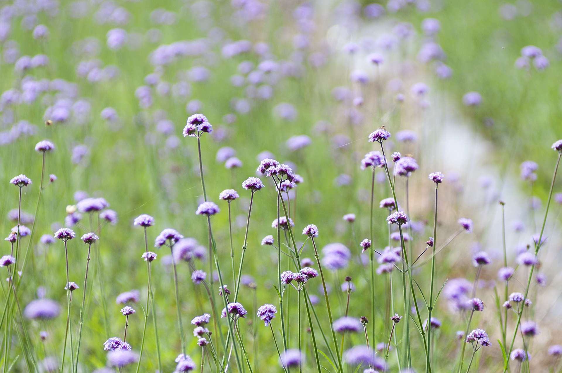 자줏빛을 띤 파란색의 버베나가 입구에서부터 넓은 대지에 지천으로 피어있다.