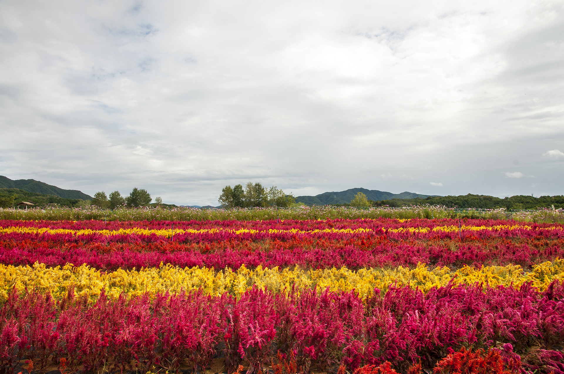 화려한 맨드라미가 소박한 모습의 코스모스 배경이 되어주고,