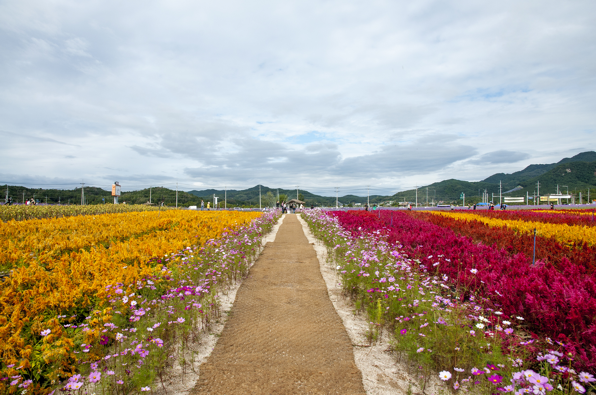 주차장에 주차후 길 건너편으로 가면 도로가에 바로 꽃밭 입구가 있다.