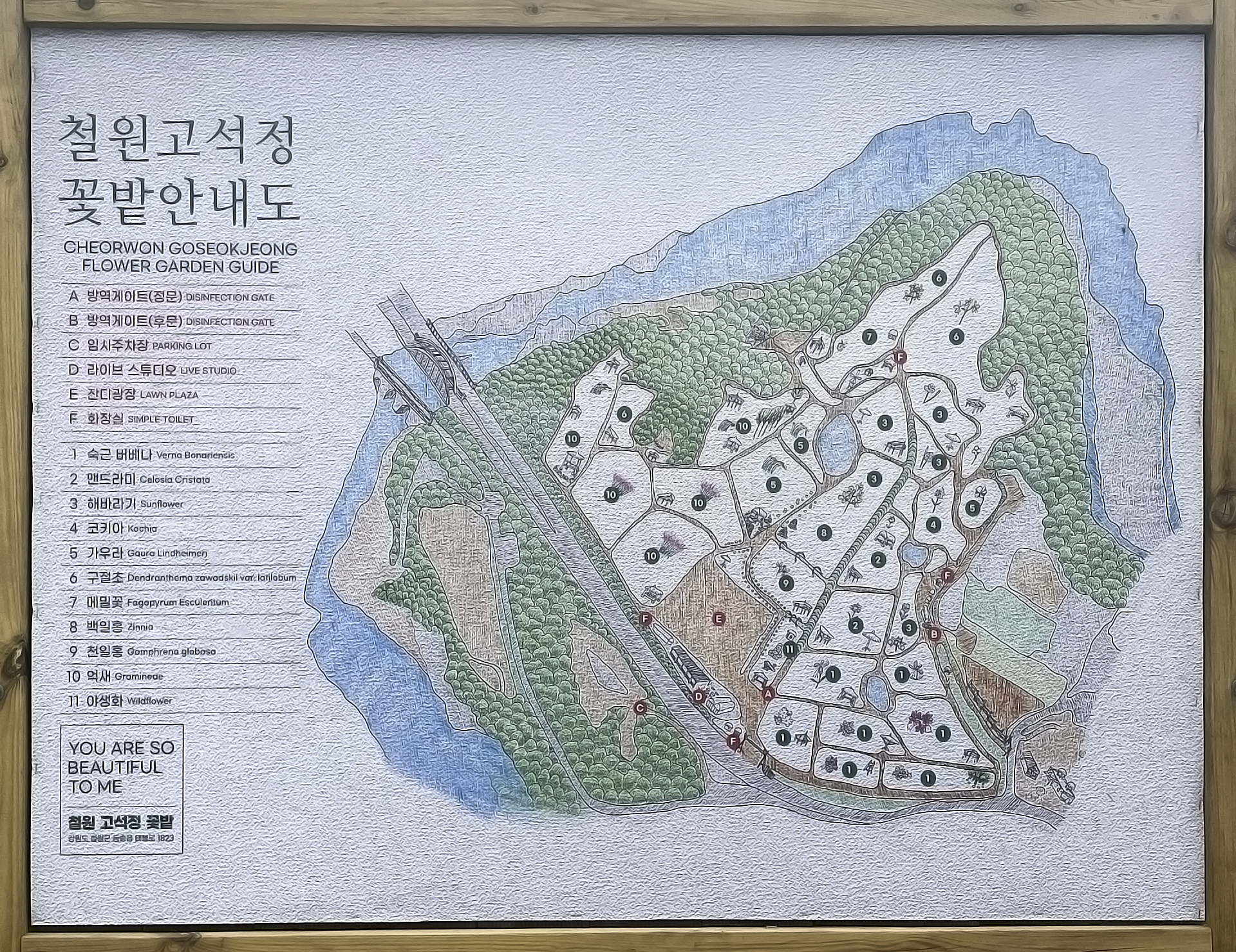 자작나무로 만들어 놓은 너무 예쁜 글자, 오늘이 한글날이라 유독 눈에 띈다. 이름마저도 평범한 고석정 꽃밭.