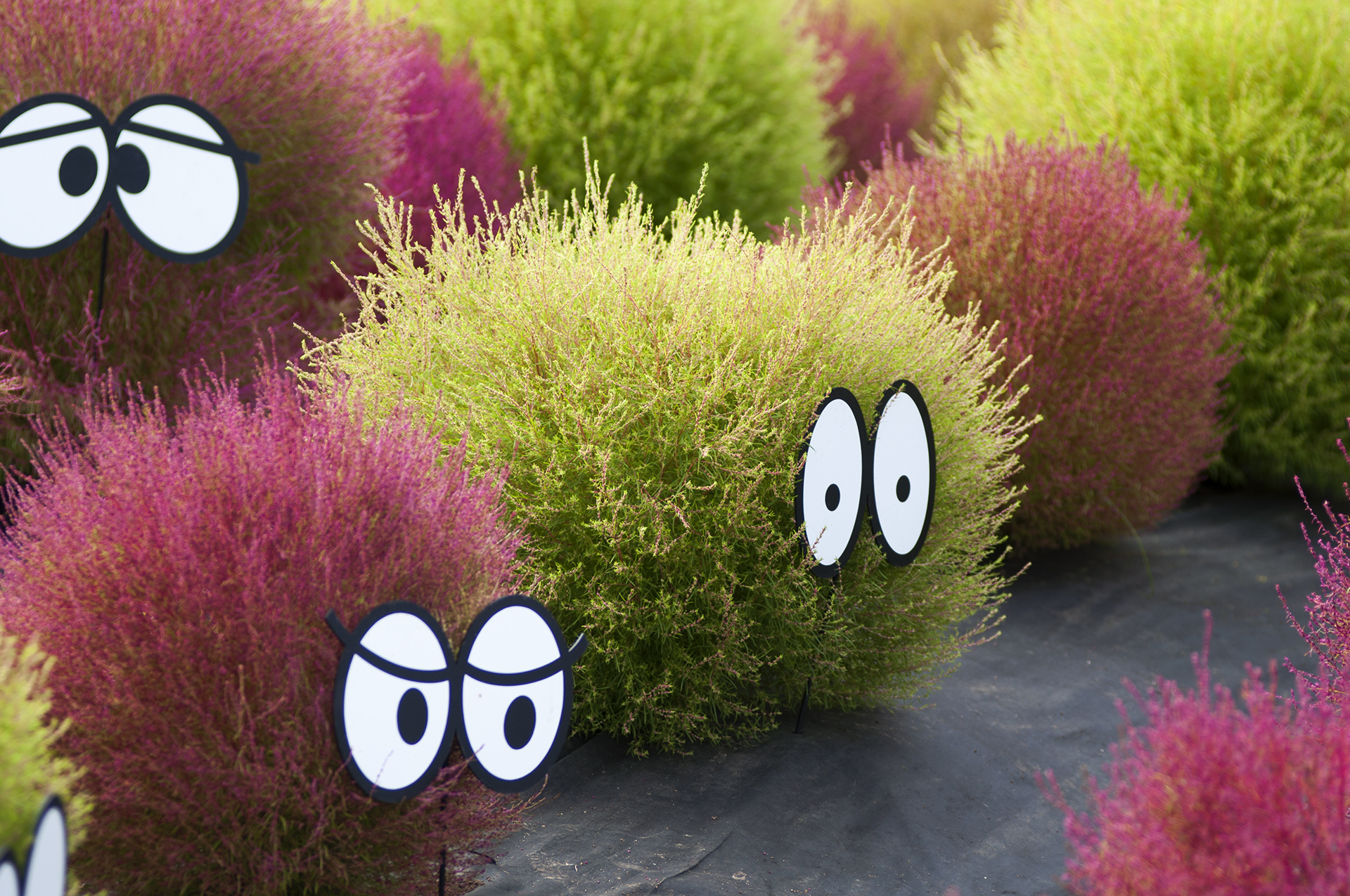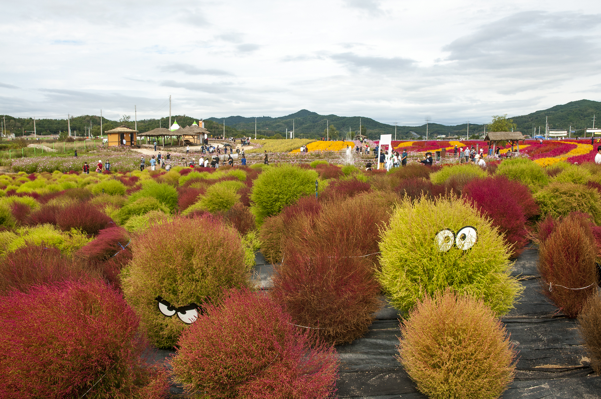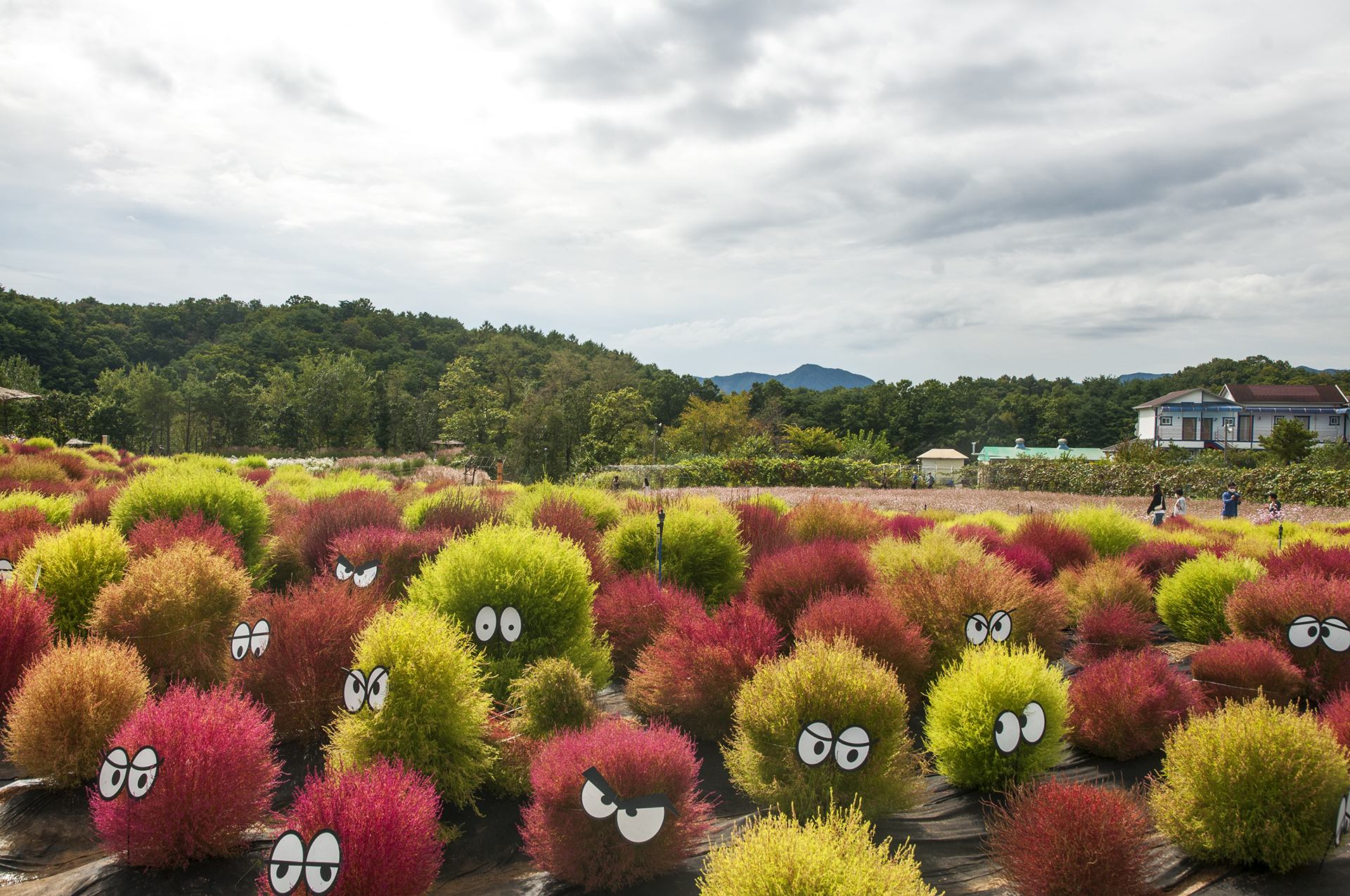이곳에도 쓰러진 코키아가 없지는 않다. 옆에 쓰러져 있는 모습에 다른 아이들이 놀라 눈이 동그래진 것처럼 보인다.