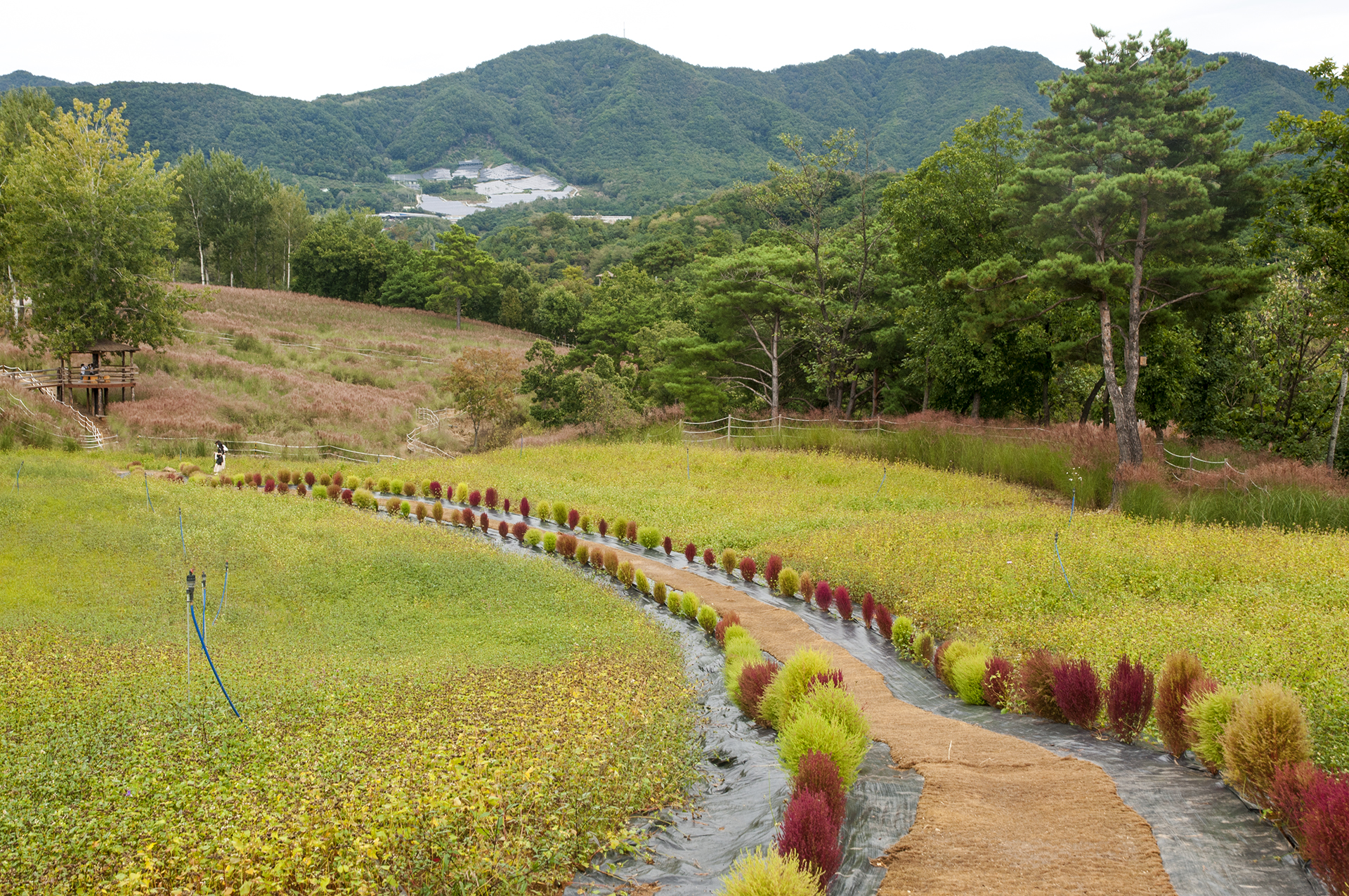 구철초 꽃밭을 지나 코키아(댑싸리)가 있는 곳으로 간다.