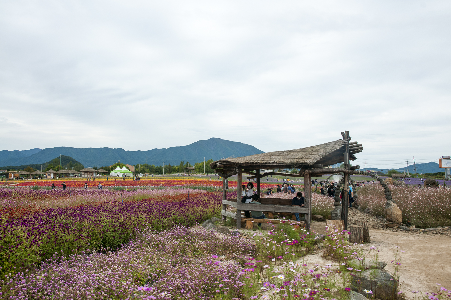 꽃밭 내에는 앉아서 쉴수있는 시설들이 많이 설치되어 있다. 대충 만들어진듯한 시설이지만 꽃밭과도 잘 어울리고 운치있어 보인다.