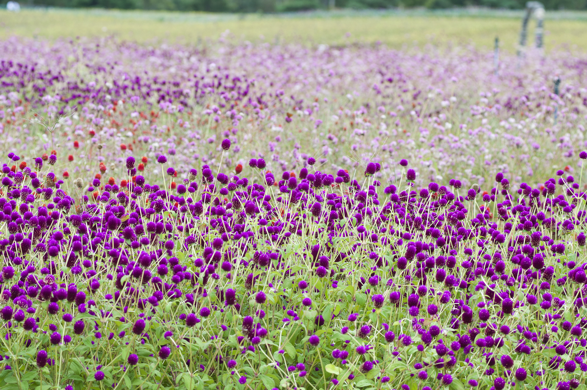 가우라 사이에서 천일홍이 존재감을 드러낸다.