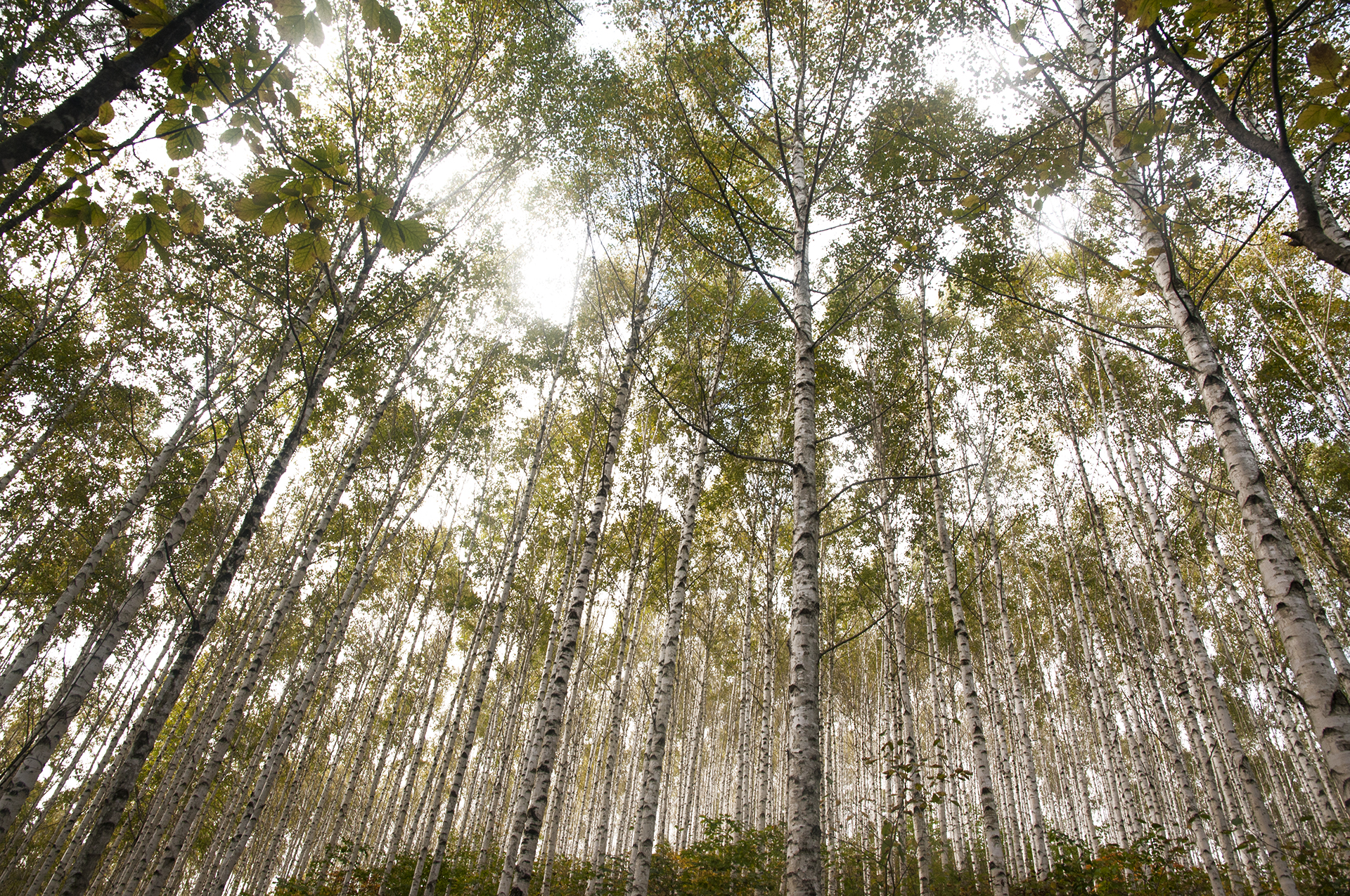 자작나무 뒤로 보이는 낙엽송숲은 언제나 확실한 대비를 보여준다.