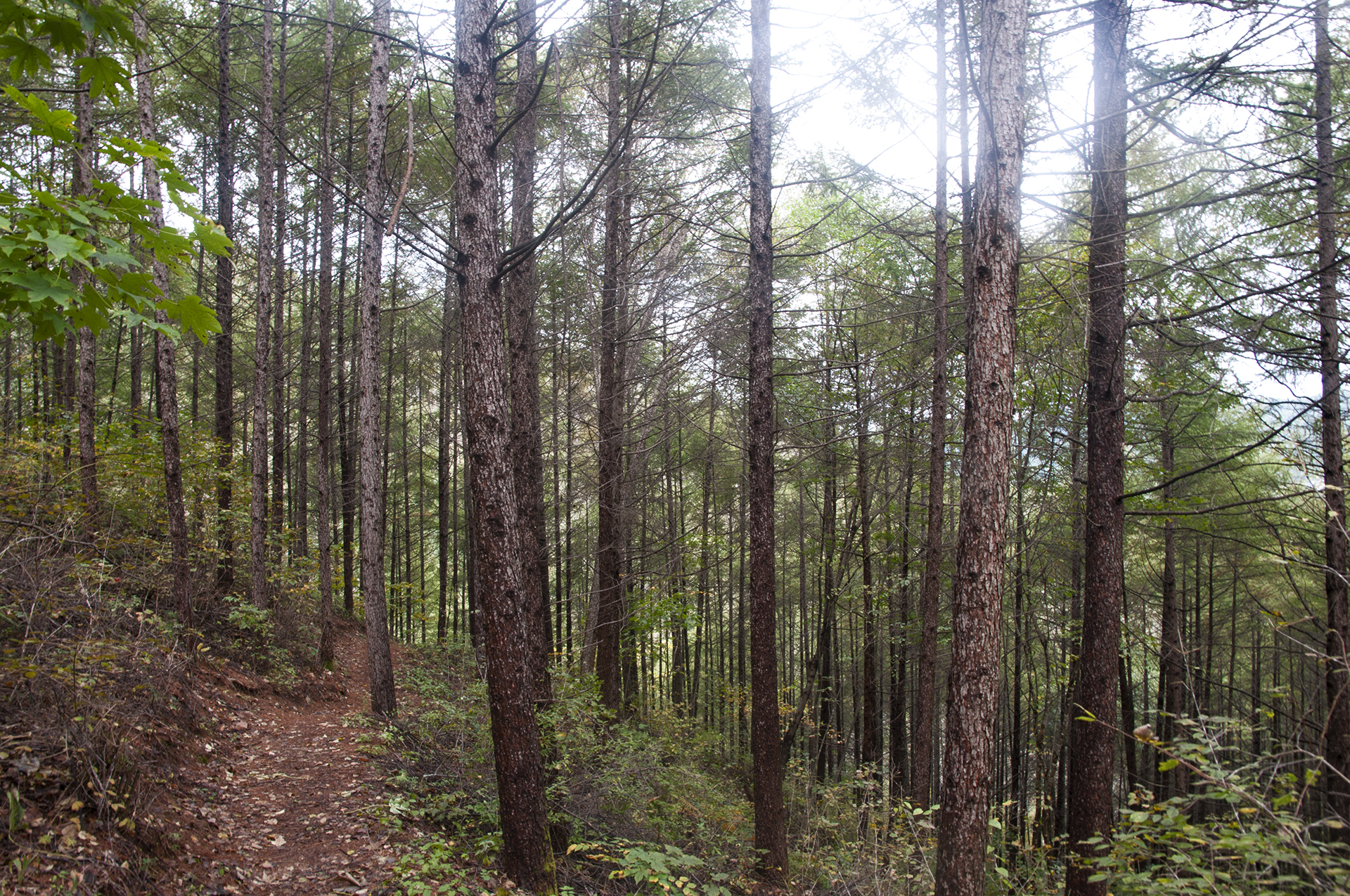 주변으로 낙엽지는 소나무, 낙엽송이 많이 보인다.