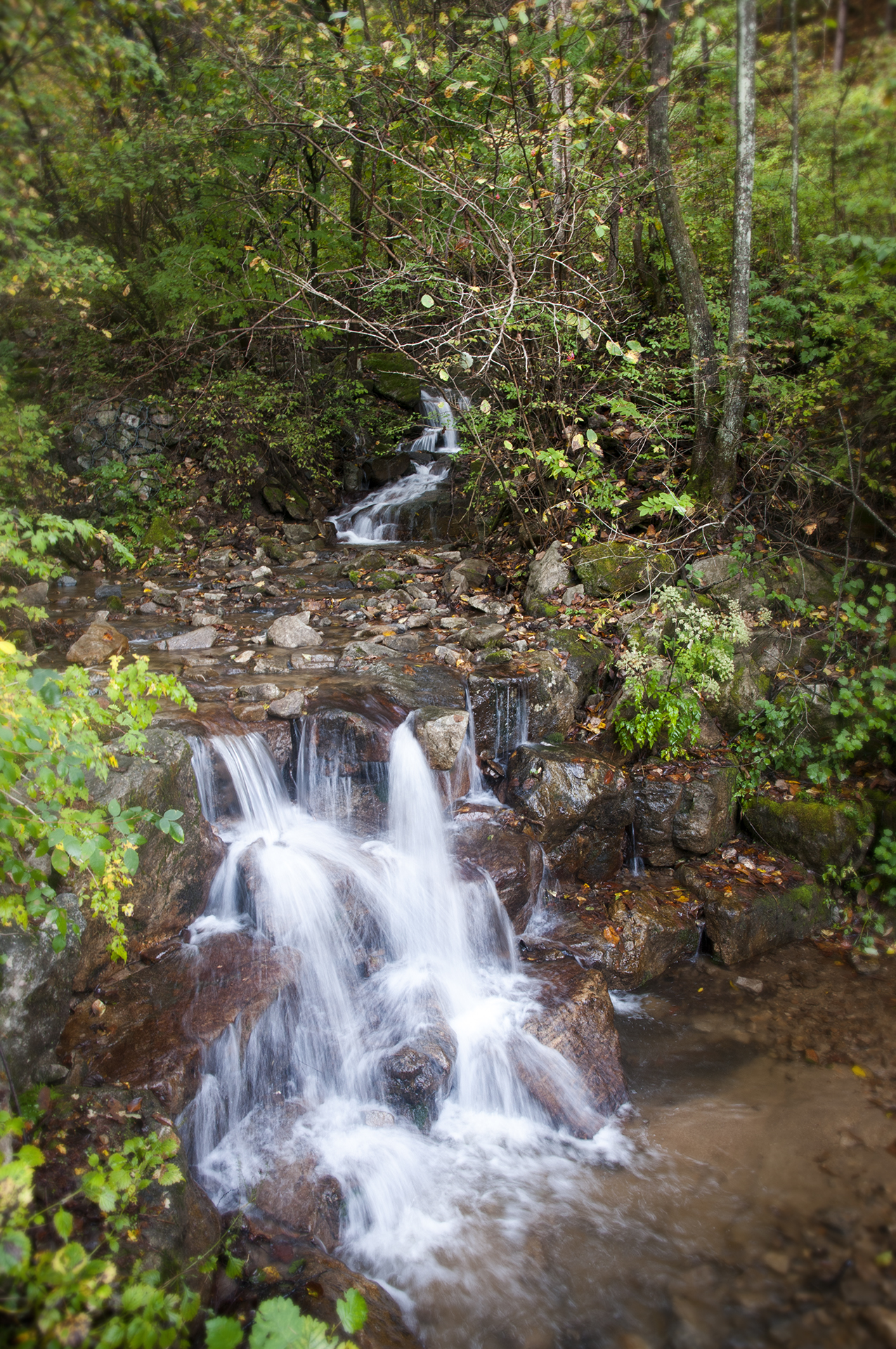 이끼 낀 바위와 가을에 물들은 단풍잎들이 아직도 비에 젖은채 계곡의 맑은 물과 잘 어우러져 있다.
