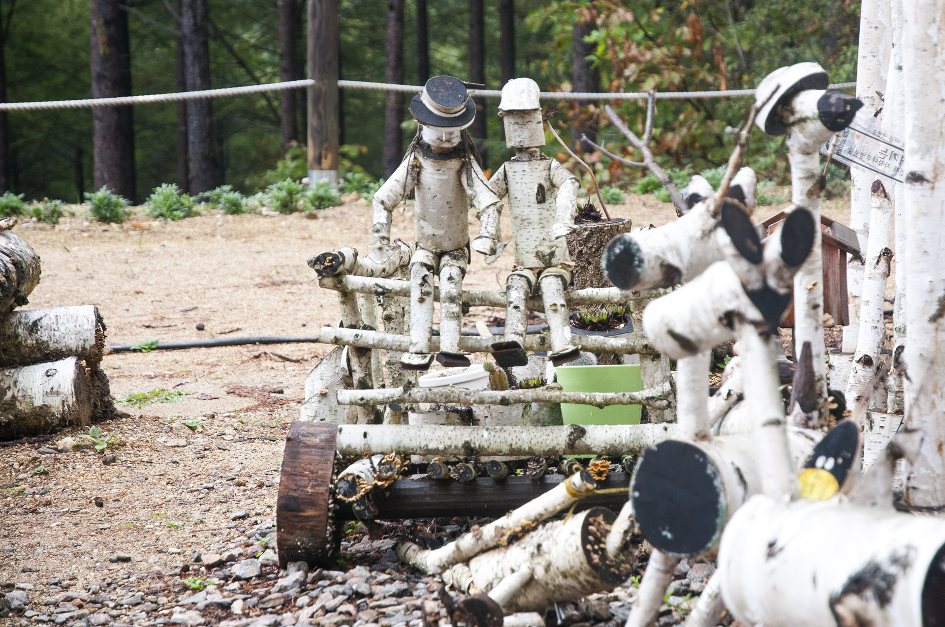자작나무숲에 도착하기전에 있는 원대리 조형물, 이곳에도 맞은편에 작은 주차장이 있다.