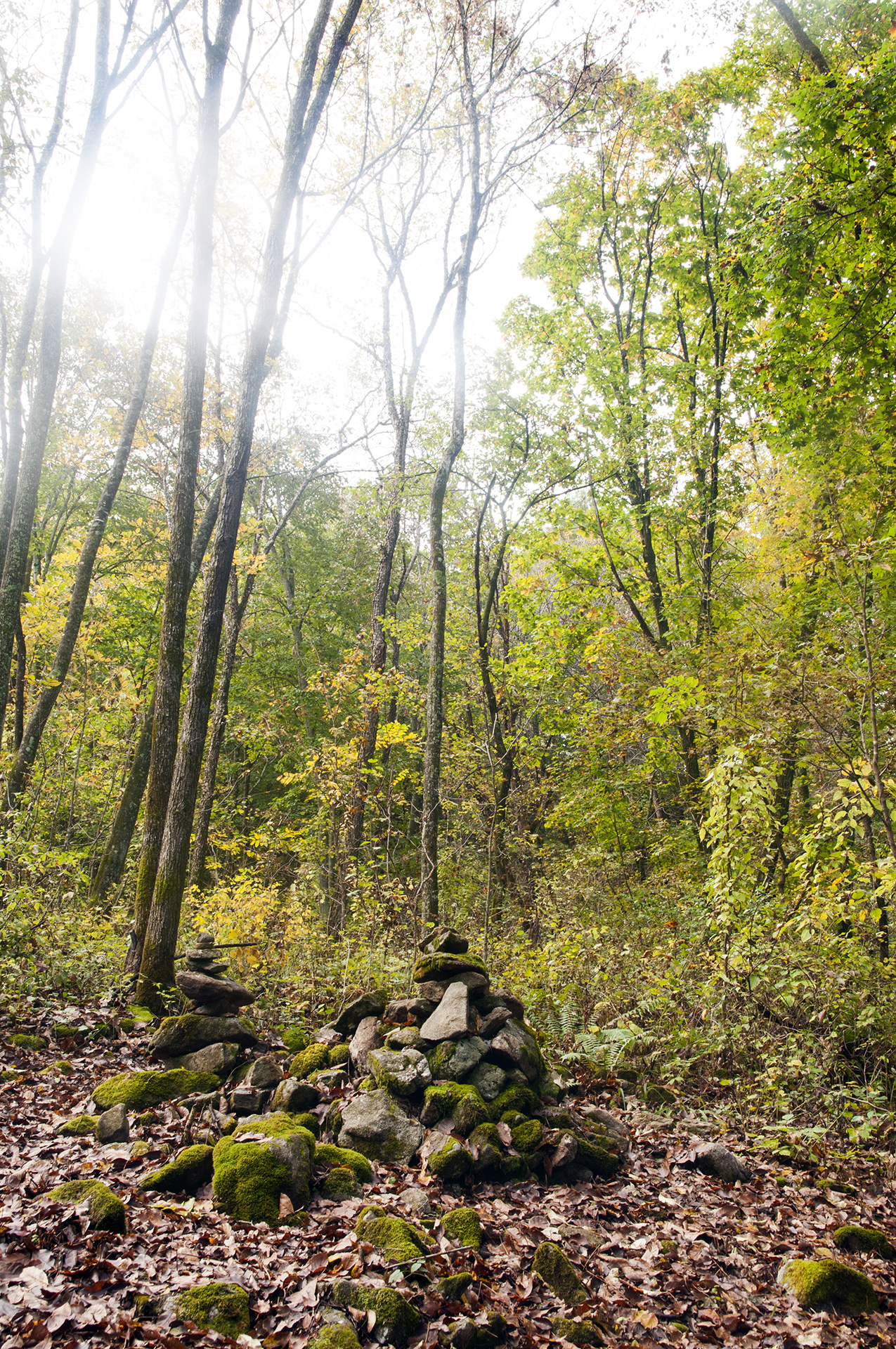 이끼가 가득한 돌탑은 자연의 일부가 되었다.