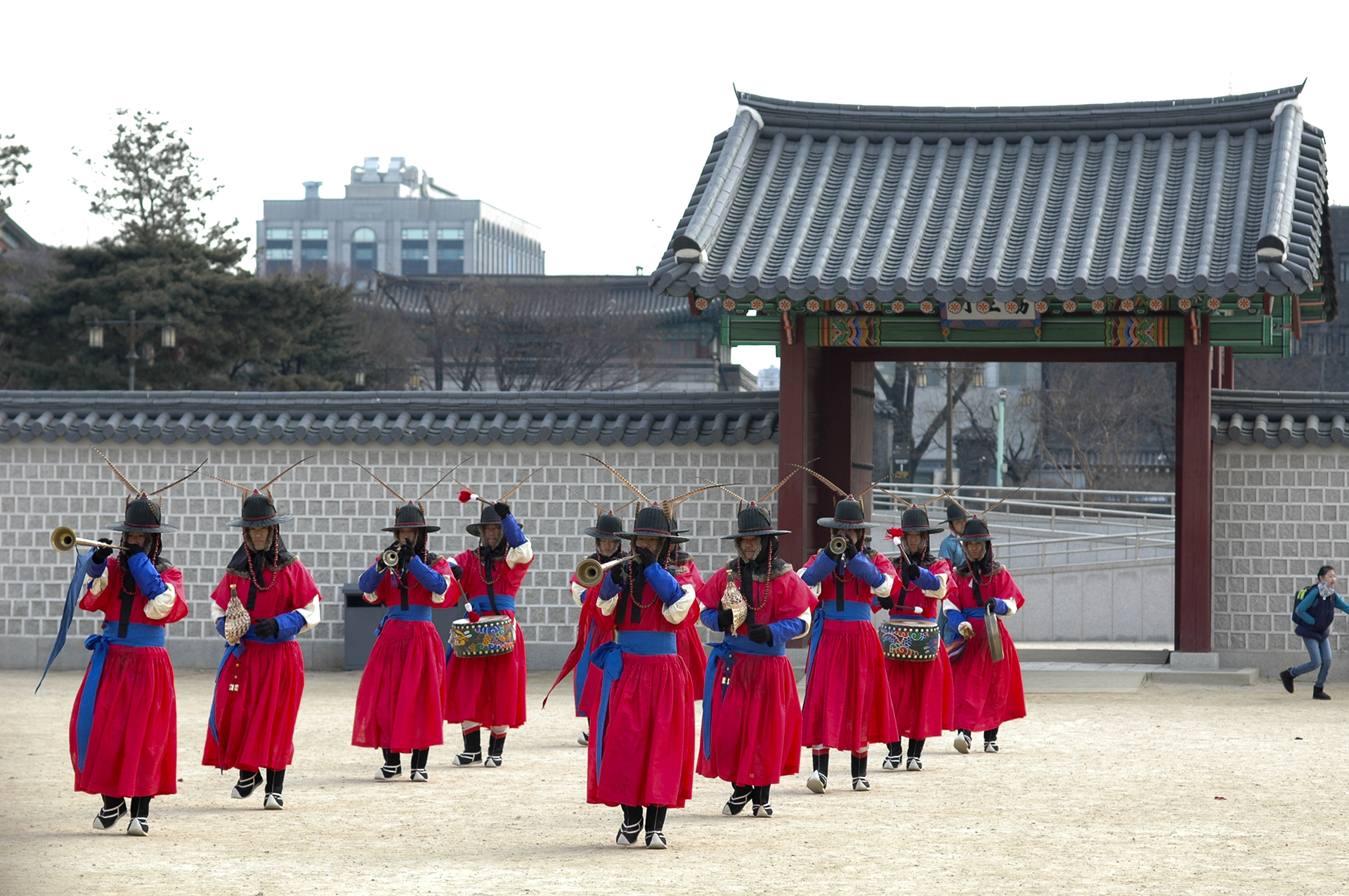 취타대의 태평소, 나발, 향피리 등이 내는 국악의 소리가 경복궁 구석구석까지 울려퍼진다. 궁에서 듣는 연주라 그런지 여느때와는 사뭇 다른 느낌이 든다.
